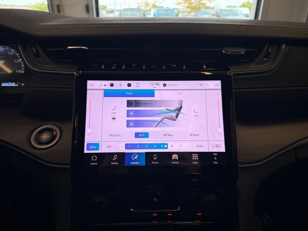 This Grand Cherokee L stands out with the Customer Preferred Package 23E and striking Diamond Black Crystal Pearl-Coat exterior, complemented by the Black Appearance Package featuring gloss black exterior accents and bold 20-inch gloss black aluminum wheels wrapped in performance all-season tires. The available dual-pane panoramic sunroof fills the cabin with natural light, while the interior rear-facing camera adds an extra layer of convenience for families on the move. The Trailer Tow Package enhances capability with a Class IV receiver hitch, full-size spare tire, automatic headlamp leveling, rear load-leveling suspension, trailer hitch zoom, dual exhaust tips, and both 7- and 4-pin wiring harnesses, making it ready for boats, campers, and gear.