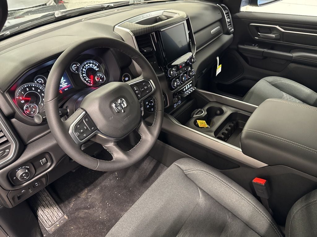 This model stands out in Forged Blue Metallic, enhanced by the Big Horn Package 27Z and Night Edition. The blacked-out accents, body-color bumpers, 20-inch aluminum wheels, G/T exhaust, Symbol of Protest badge, and upgraded exterior mirrors give the truck a commanding and modern appearance. The anti-spin differential adds improved capability when navigating gravel roads or snowy terrain around Buffalo.