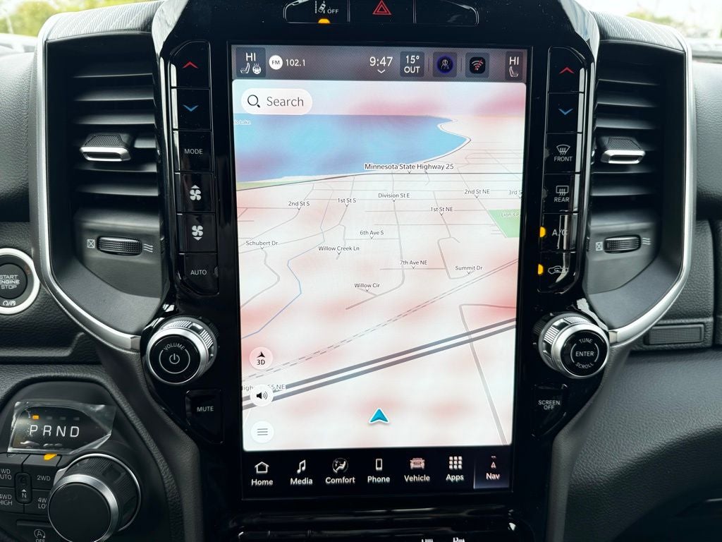 Inside, the Big Horn Level 2 Equipment Group brings a host of comfort and convenience features that make every drive more enjoyable. Heated front seats and a heated leather-wrapped steering wheel keep the cabin comfortable during Minnesota winters, while the 8-way power drivers seat with lumbar support and rear 60/40 folding seats provide flexibility and comfort for both driver and passengers. Dual-zone automatic climate control, power-adjustable pedals, and a rear power-sliding window add to the premium feel.
