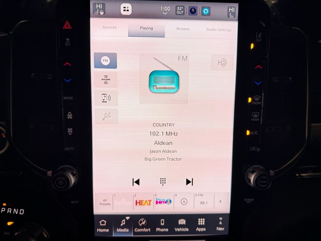 Inside, the Laramie Level 2 Equipment Group elevates the cabin with a 12-inch digital cluster, Uconnect 5 Navigation with a large 14.4-inch touchscreen, a 19-speaker Harman Kardon premium audio system, rain-sensing wipers, a power tailgate, and a front passenger interactive display for entertainment and navigation support. Comfort is further enhanced with refined seating, advanced climate control, and thoughtful storage solutions.