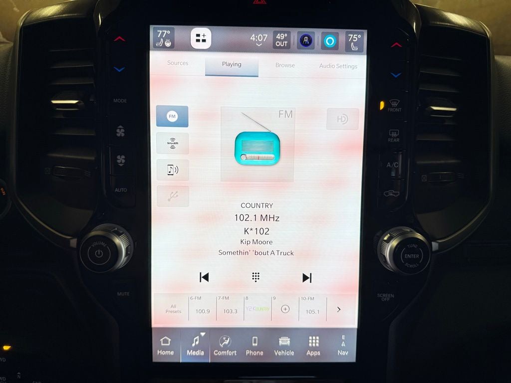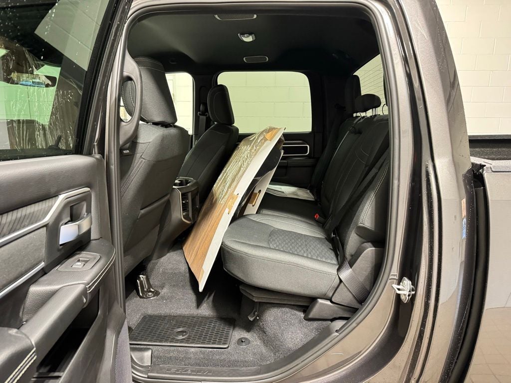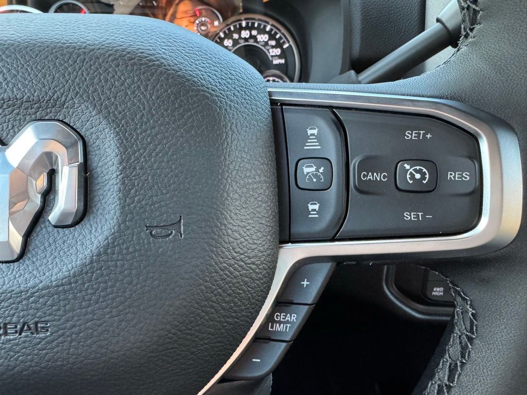 This Big Horn adds the Premium Cloth Bucket Seat upgrade and the Customer Preferred Package 2UZ, enhancing comfort with heated front seats and a heated steering wheel. The Night Edition package adds a bold, blackout appearance with painted front and rear bumpers, 20-inch black aluminum wheels, and darkened exterior accents. The Big Horn Level 1 Plus Equipment Group elevates convenience with a fold-flat load floor, emergency vehicle alert system, a glove box lamp, Uconnect 5 NAV with a 12-inch touchscreen, second-row in-floor storage bins, and power heat, fold, and telescoping trailer-tow mirrors. Added technology includes trailer tow pages, a dual-zone automatic climate control system, an 8-way power driver seat, forward and reverse utility lights, LED bed lighting, deployable bed step, and a premium Alpine audio system with subwoofer. SiriusXM 360L, remote start, and enhanced interior storage further improve everyday usability.