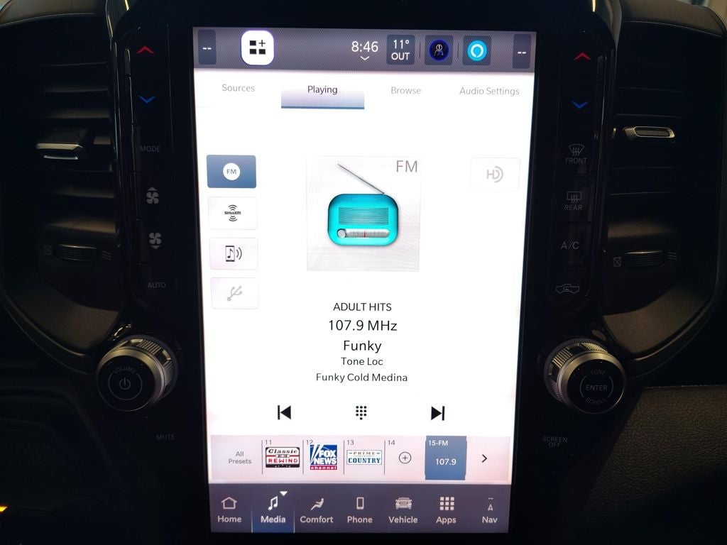- Radio w/Seek-Scan, Clock, Speed Compensated Volume Control, Aux Audio Input Jack, Voice Activation, Radio Data System and Uconnect External Memory Control