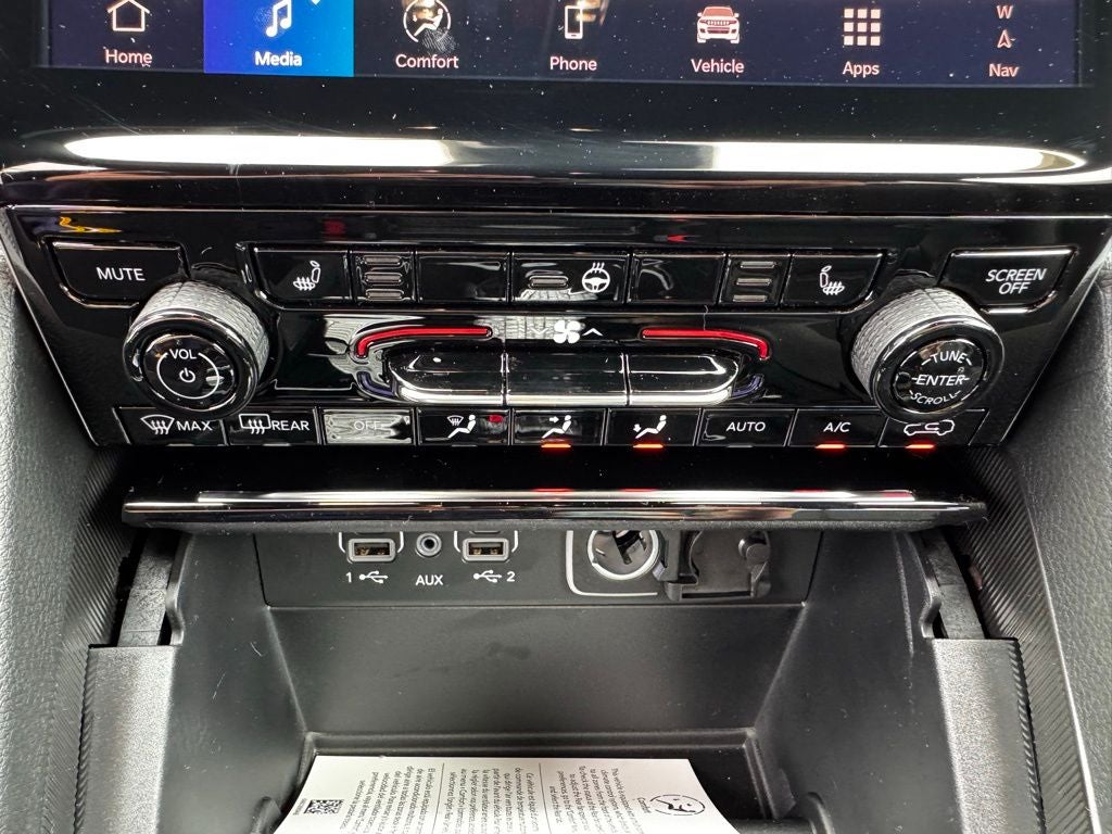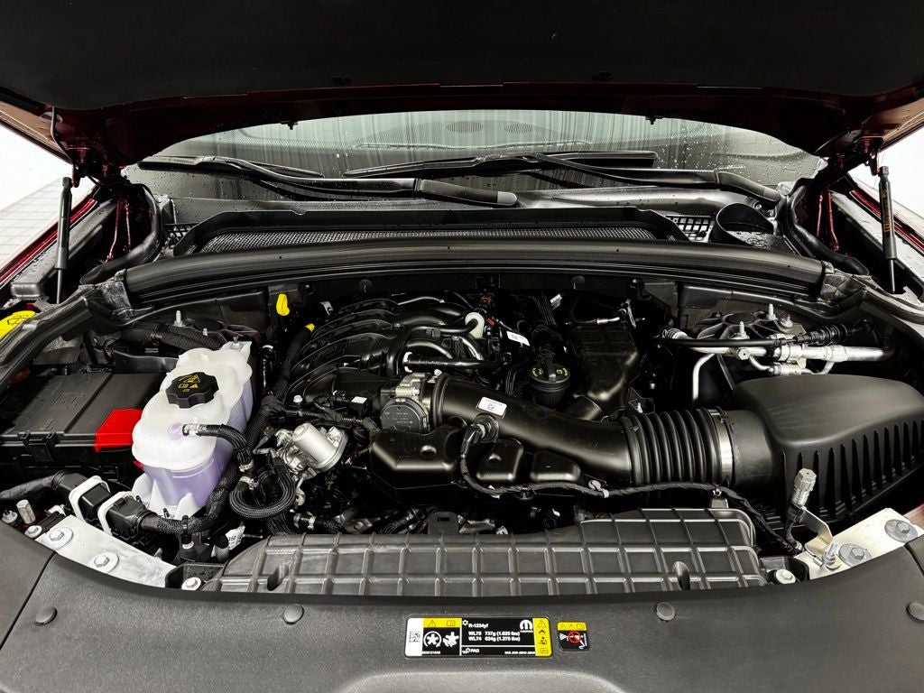 The interior is designed with comfort and convenience in mind, featuring heated leather-trimmed front and rear seats, a heated steering wheel, remote start, tri-zone automatic climate control, and a spacious three-row layout with seating for up to seven passengers. The Uconnect 5 infotainment system with a large touchscreen, Apple CarPlay, Android Auto, and premium audio ensures everyone stays connected and entertained on every journey. Flexible cargo configurations and multiple USB ports make this SUV as practical as it is comfortable.