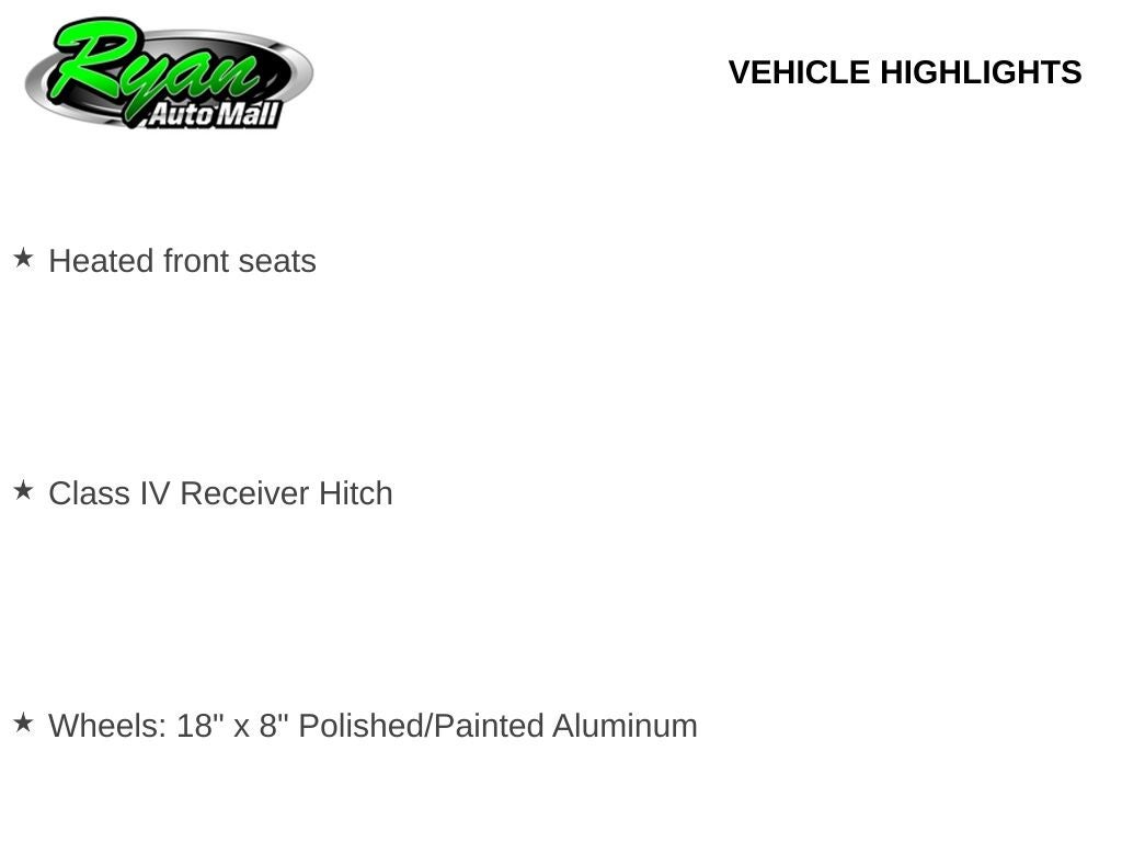 - Wheels: 18" x 8" Polished/Painted Aluminum