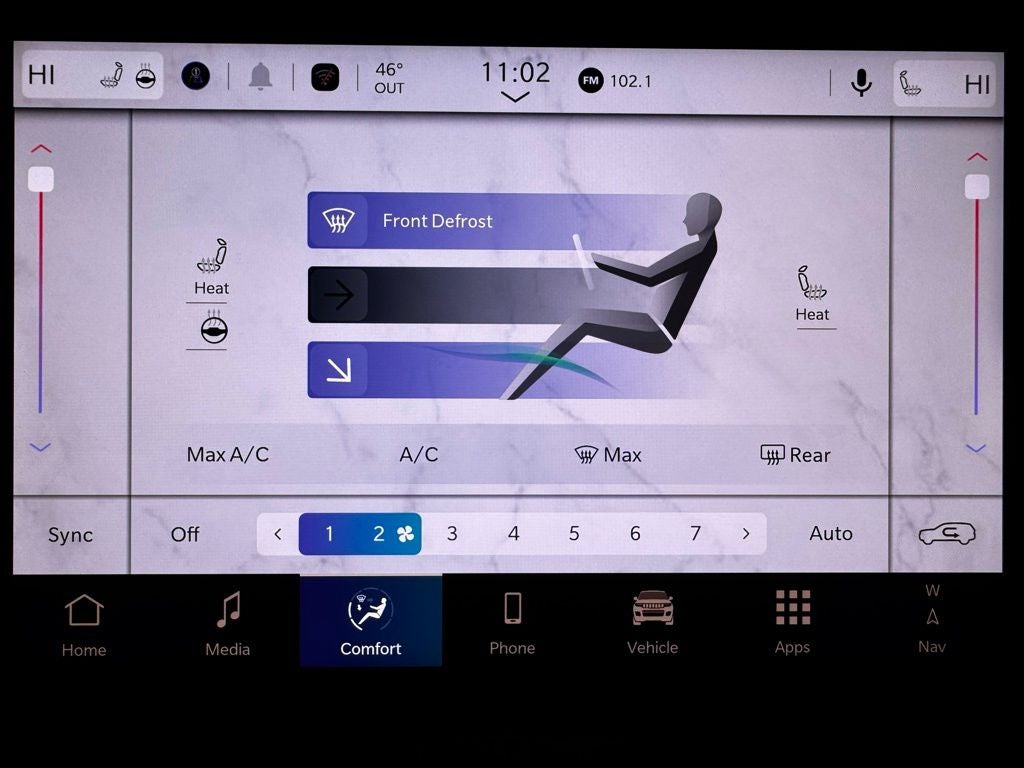 Technology takes center stage with the Uconnect 5 NAV system, which includes a large touchscreen display, built-in navigation, and seamless smartphone integration via Apple CarPlay and Android Auto. A 9-speaker premium audio system with active noise control delivers a rich sound experience, while voice command and wireless connectivity keep the driver connected hands-free. The digital driver information display provides real-time data such as tire pressure, navigation prompts, and fuel economy.