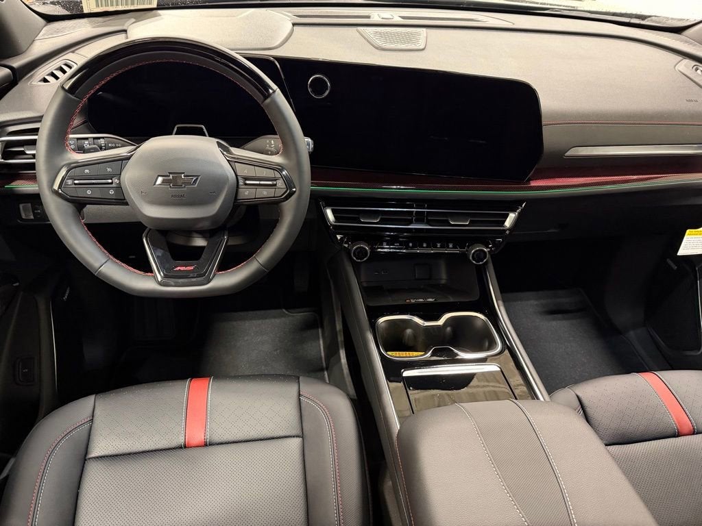 Inside, the Traverse RS offers a premium, driver-focused cabin with seating for up to seven passengers. Comfort is elevated with heated and ventilated front seats, heated second-row outboard seats, and a heated steering wheel, while tri-zone automatic climate control ensures personalized comfort for everyone on board. Power-adjustable front seats with lumbar support, memory settings, and a power tilt and telescopic steering column make it easy to find your perfect driving position. Convenience features like remote start, keyless open and start, a universal home remote, and a 120V power outlet enhance everyday usability.