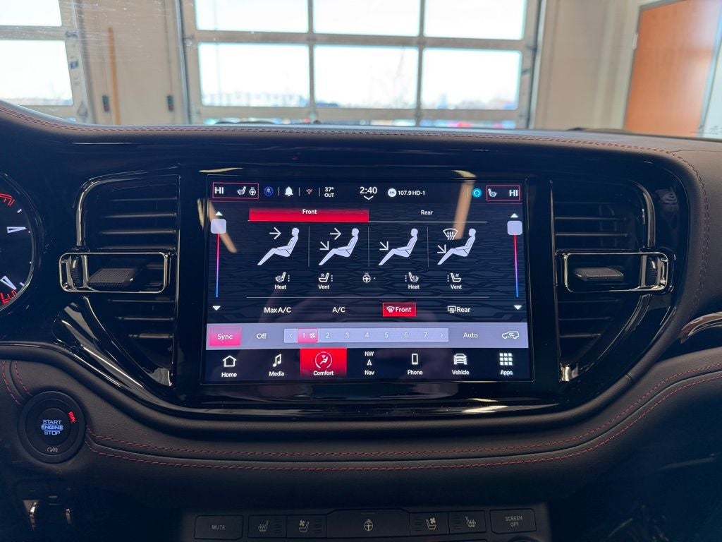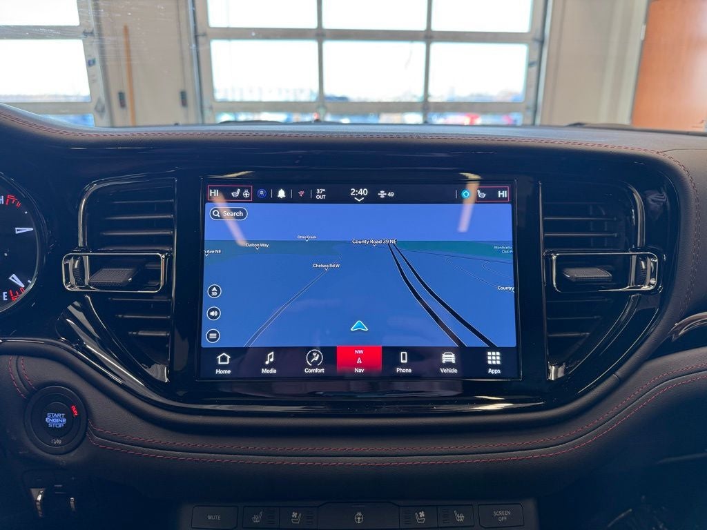 The Blacktop Redline Package intensifies the Durangos already aggressive appearance, featuring Blacktop leather SRT performance seats, gloss-black exterior badging, a performance lower splitter, an SRT rear spoiler, black Dodge grille badge, GT decal with red tracer, premium door trim, and exclusive Crypto Sweep Etch interior accents. Striking 20-inch Black Noise split 5-spoke wheels wrapped in 265/50R20 performance all-season tires give the Durango a powerful and confident stance on Monticello roads. This package also includes 6-passenger seating with second-row fold-and-tumble captains chairs, heightening comfort and accessibility for families and passengers.