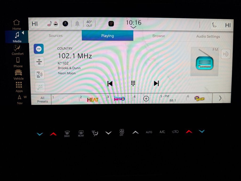 Technology is front and center with a large Uconnect touchscreen display, digital driver information center, and integrated connectivity features. The digital auto-dimming rearview mirror, automatic-dimming exterior driver mirror, and rain-sensitive windshield wipers add thoughtful refinement. Safety and driver assistance systems include Adaptive Cruise Control, Blind Spot Monitoring, Forward Collision Warning with Active Braking, Lane Management System, Side Distance Warning, ParkSense front and rear park assist, and a Surround-View Camera System. An integrated off-road camera further enhances visibility when exploring beyond paved roads.