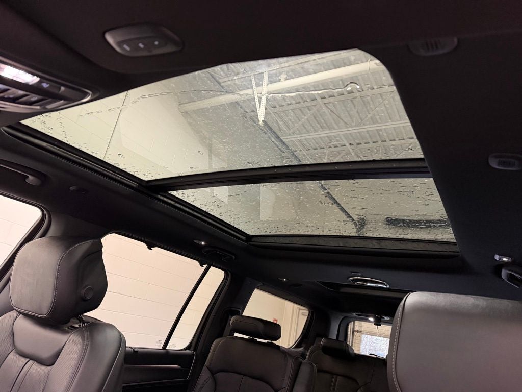 The Black Appearance Package and striking 22-inch painted gloss-black wheels wrapped in 285/45R22XL all-season tires create a bold, modern presence. The tri-pane panoramic sunroof fills the spacious interior with natural light, while power deployable running boards provide convenient entry and exit. Quadra-Lift air suspension paired with semi-active damping delivers a smooth, adaptable ride with adjustable ground clearance for varying road conditions.