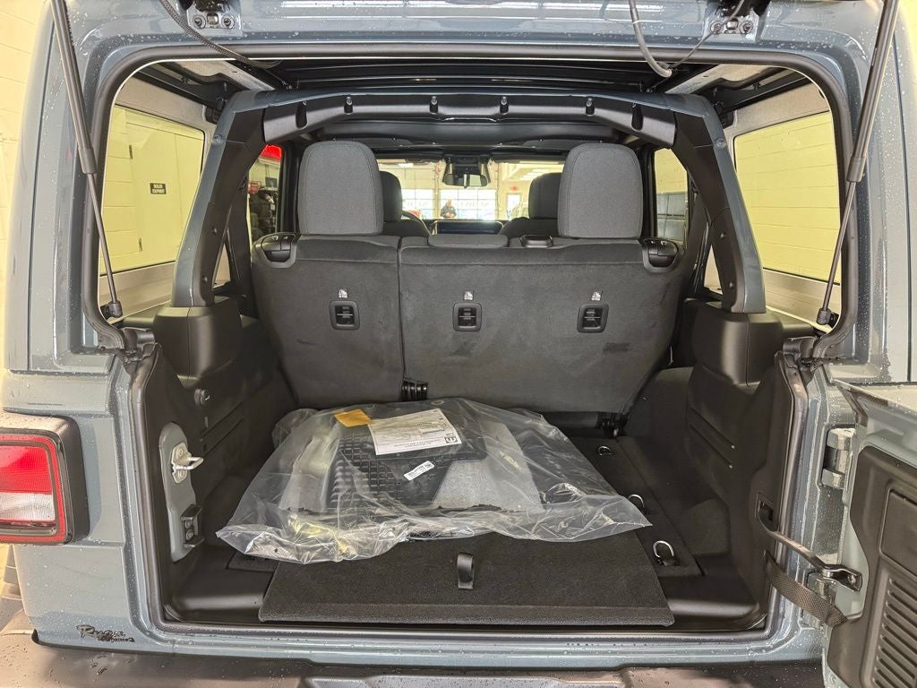 Paired with the 8-speed automatic 850RE transmission, this Wrangler delivers smooth shifting and strong low-end control. The Sky One-Touch Power-Top provides open-air freedom at the push of a button, with removable rear quarter windows, a power-top storage bag, a rear defroster, and a rear wiper/washer system.