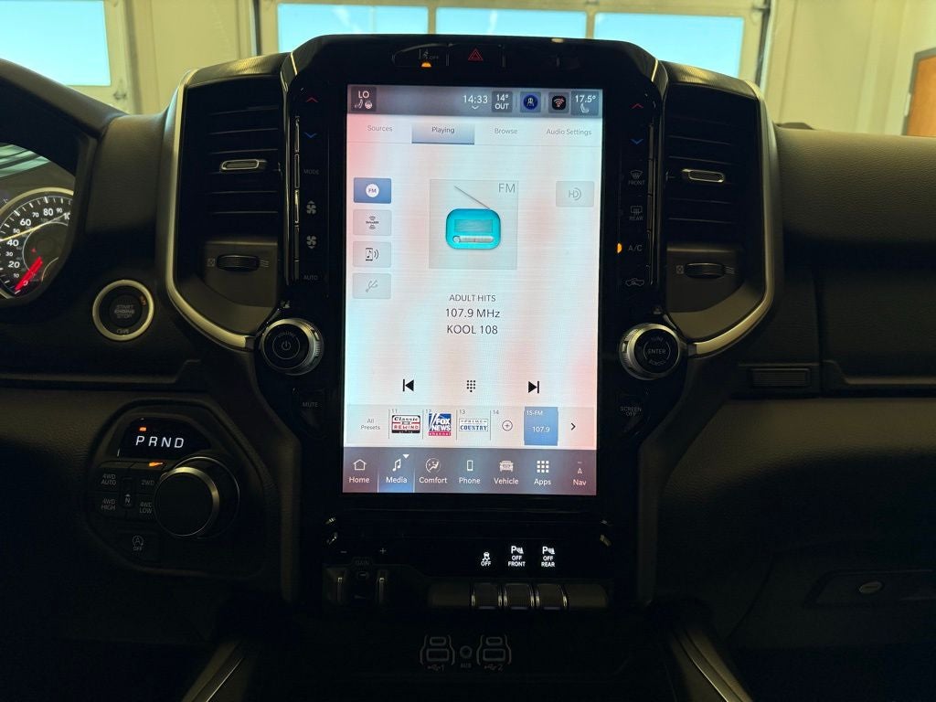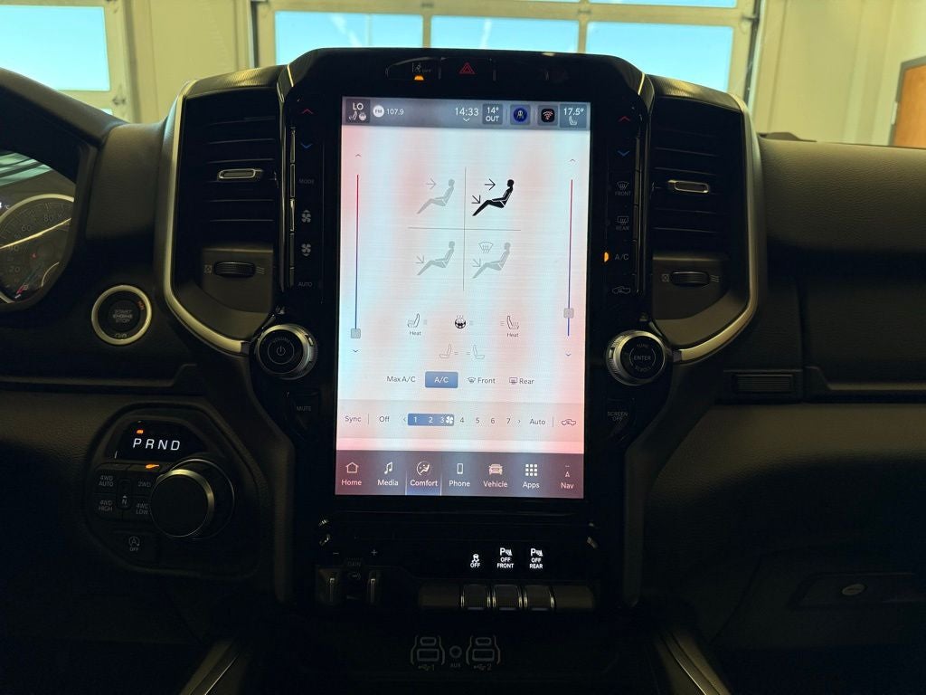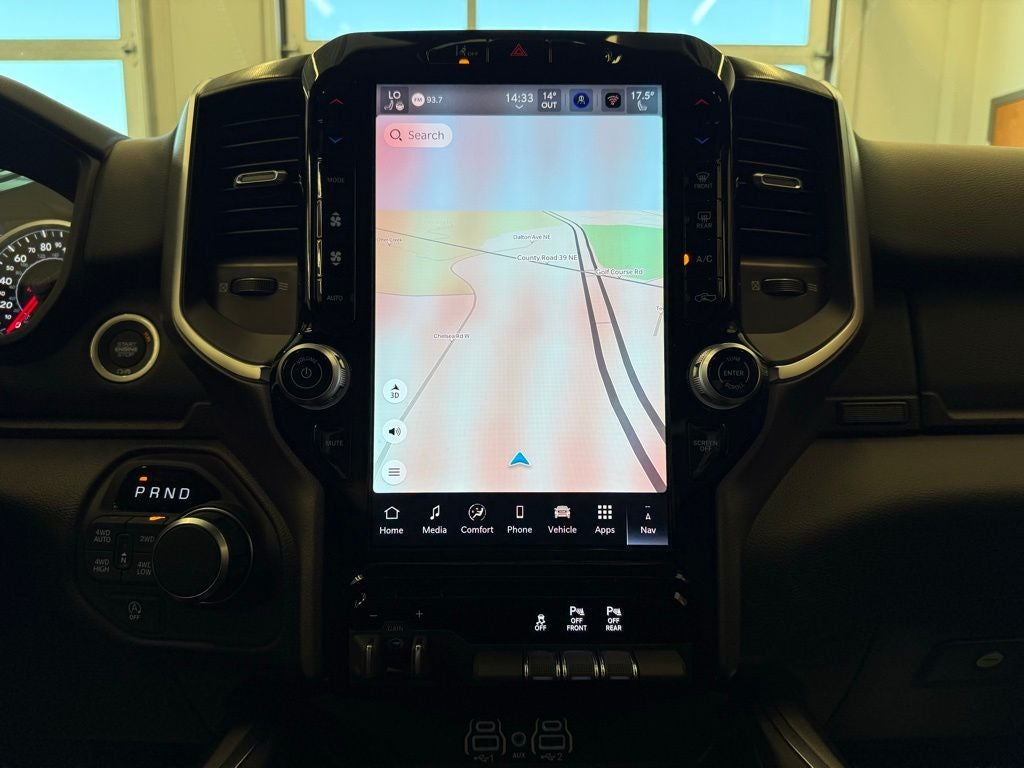 Technology takes center stage with the Uconnect 5 NAV system featuring a 12-inch touchscreen display. This advanced infotainment suite includes navigation, wireless Apple CarPlay, Android Auto, Bluetooth®, and SiriusXM 360L with a premium nine-speaker sound system and subwoofer. A 7-inch color driver information display provides customizable performance data, while the 400-watt inverter and multiple USB and power outlets keep devices charged and ready for the job.