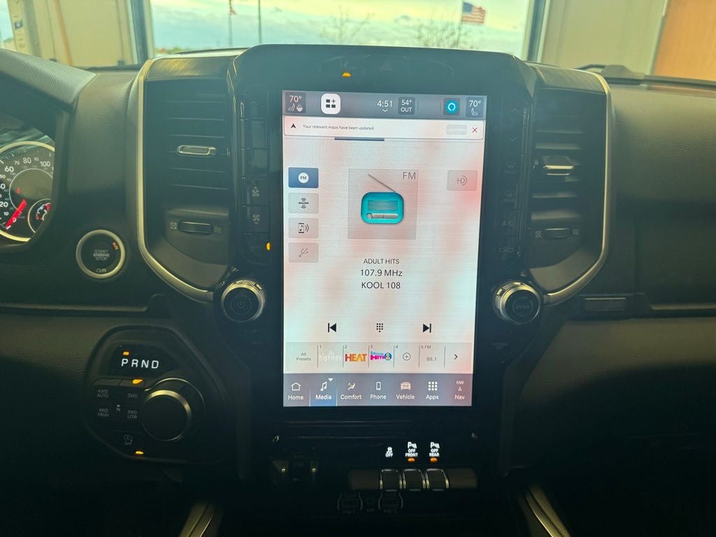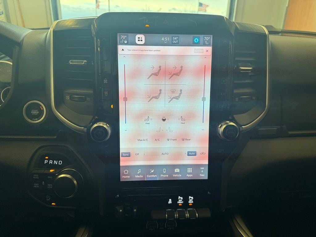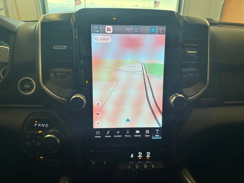 Inside, the spacious Crew Cab offers exceptional comfort and storage flexibility, including rear 60/40 folding seats, underfloor storage bins, and rear seat map pockets. The Uconnect 5 NAV system features a 12-inch touchscreen with built-in navigation, wireless smartphone connectivity, SiriusXM 360L, and 4G LTE Wi-Fi capabilitykeeping you connected wherever you travel in the Monticello area. A 9-speaker Alpine audio system with a subwoofer provides premium sound quality, while the configurable drive mode system lets drivers tailor performance for efficiency, towing, or sport.