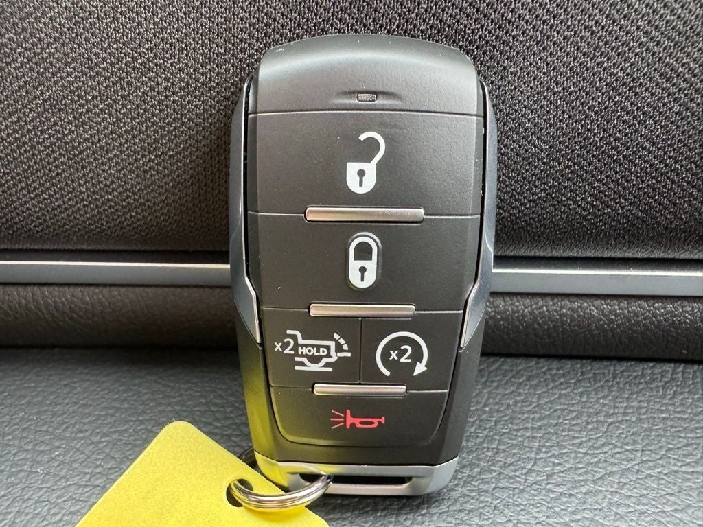 This truck is further enhanced by the Big Horn Level 2 Equipment Group, adding heated front seats, a heated steering wheel, an 8-way power adjustable driver seat with lumbar support, dual-zone automatic climate control, a leather-wrapped steering wheel, power adjustable pedals, rear power sliding window, and second-row in-floor storage bins for added versatility. The Uconnect 5 navigation system with a 12-inch touchscreen delivers crisp graphics, intuitive controls, connected travel services, and seamless smartphone integration, while a nine-speaker amplified audio system with subwoofer provides impressive sound quality.