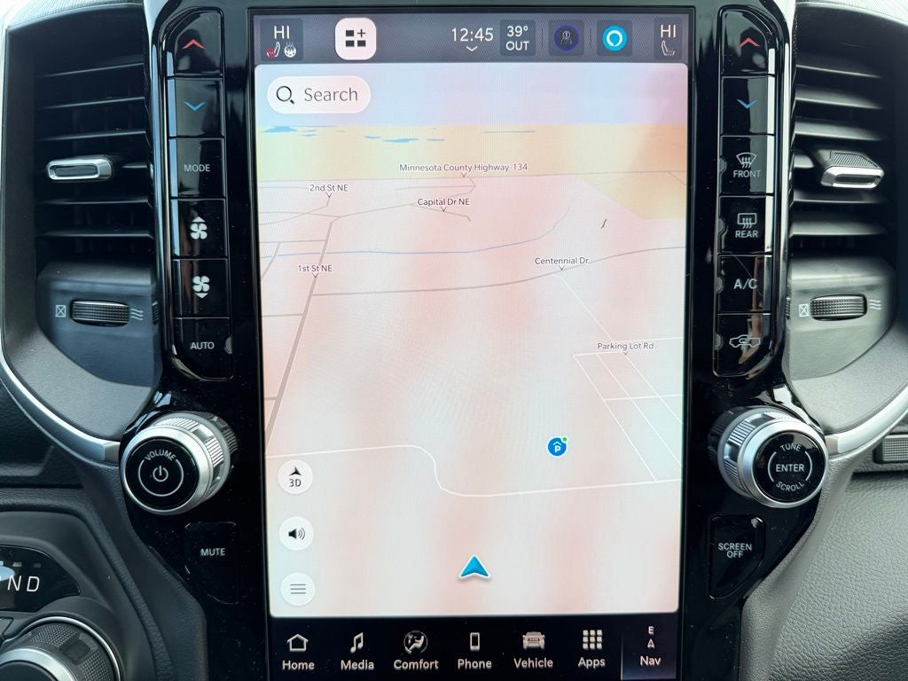 Inside, the Big Horn Level 2 Equipment Group creates a well-appointed cabin designed for comfort and connectivity. The Uconnect 5 NAV system with a 12-inch touchscreen display and 7-inch TFT color cluster keep key information front and center. Connected Travel and Traffic Services, SiriusXM 360L capability and a 9-amplified speaker system with subwoofer enhance the driving experience. Heated front seats, a heated steering wheel and dual-zone automatic climate control provide comfort during cold Minnesota winters, while an 8-way power adjustable driver seat with power lumbar support ensures a personalized fit.