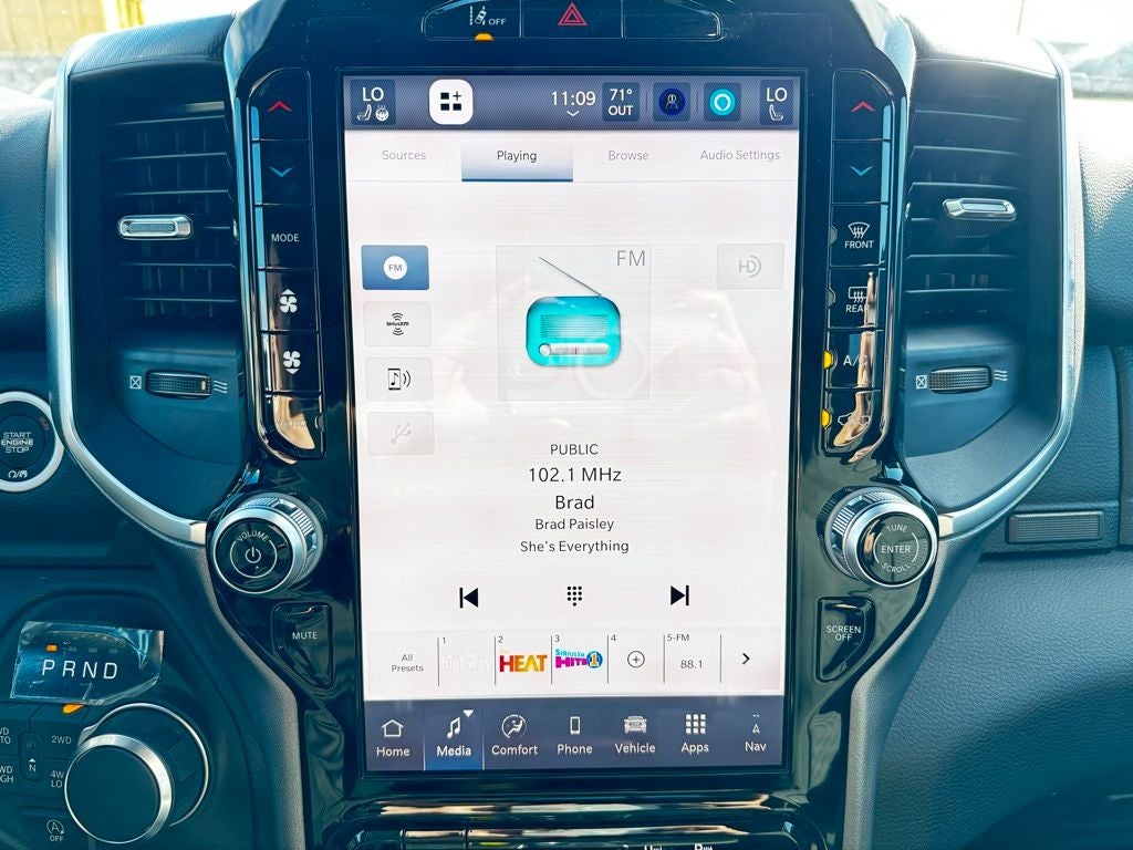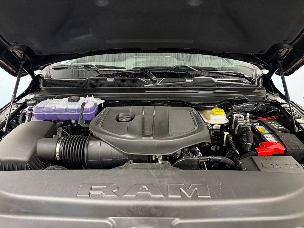 Inside, the Big Horn Crew Cab offers the spaciousness and refinement families and truck owners expect. The Big Horn Level 2 Equipment Group adds heated front seats, a heated steering wheel, and an 8-way power-adjustable drivers seat with lumbar support. Dual-zone automatic temperature control, a rear 60/40 folding seat, and second-row in-floor storage bins provide both comfort and convenience. Premium technology features include Uconnect 5 NAV with a 12-inch touchscreen display, SiriusXM 360L with trial subscription, 9 amplified speakers with subwoofer, and a 7-inch full-color driver information display. The cabin also includes a leather-wrapped steering wheel, automatic-dimming rearview mirror, automatic power-folding heated mirrors, power-adjustable pedals, and a power tailgate release.
