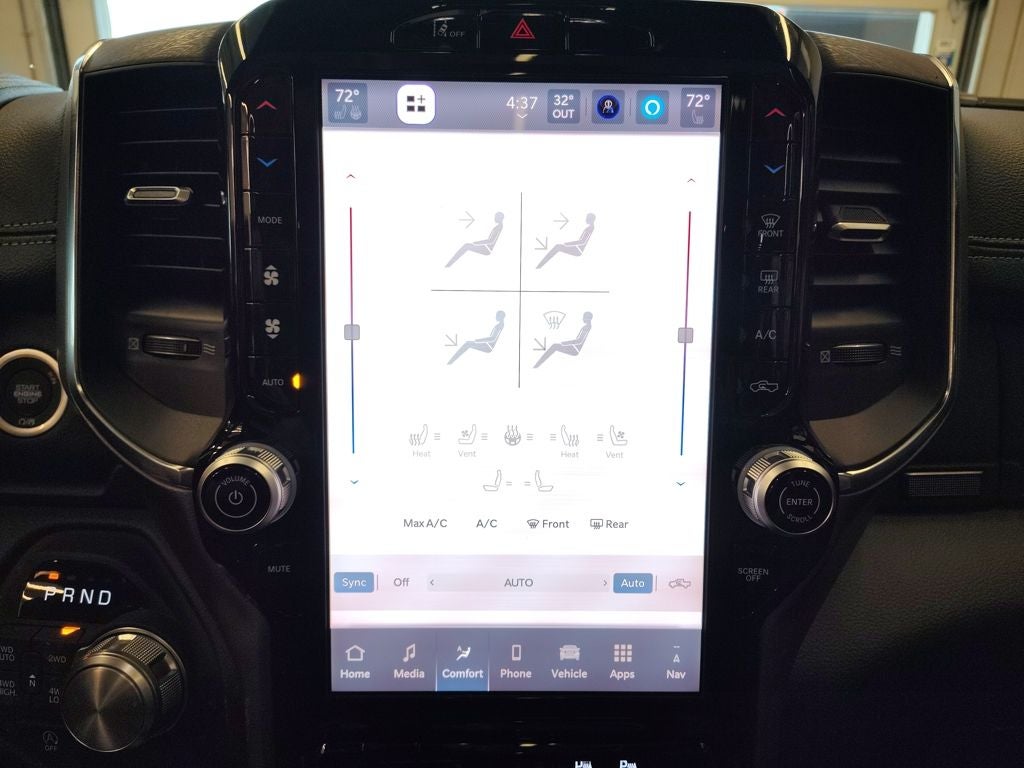 Under the hood, the Ram 1500 Laramie is engineered for confident performance and control, supported by a robust 4x4 drivetrain and a 3.92 rear axle ratio for enhanced towing and off-road capability. Standard equipment includes a smooth-shifting automatic transmission, advanced traction management, and a refined suspension that provides a comfortable ride whether you are commuting through Monticello or heading out on longer Minnesota highways. Safety and driver-assist technologies such as forward collision warning, adaptive cruise control, blind spot monitoring, rear cross-path detection, and a high-definition rearview camera help add peace of mind behind the wheel.