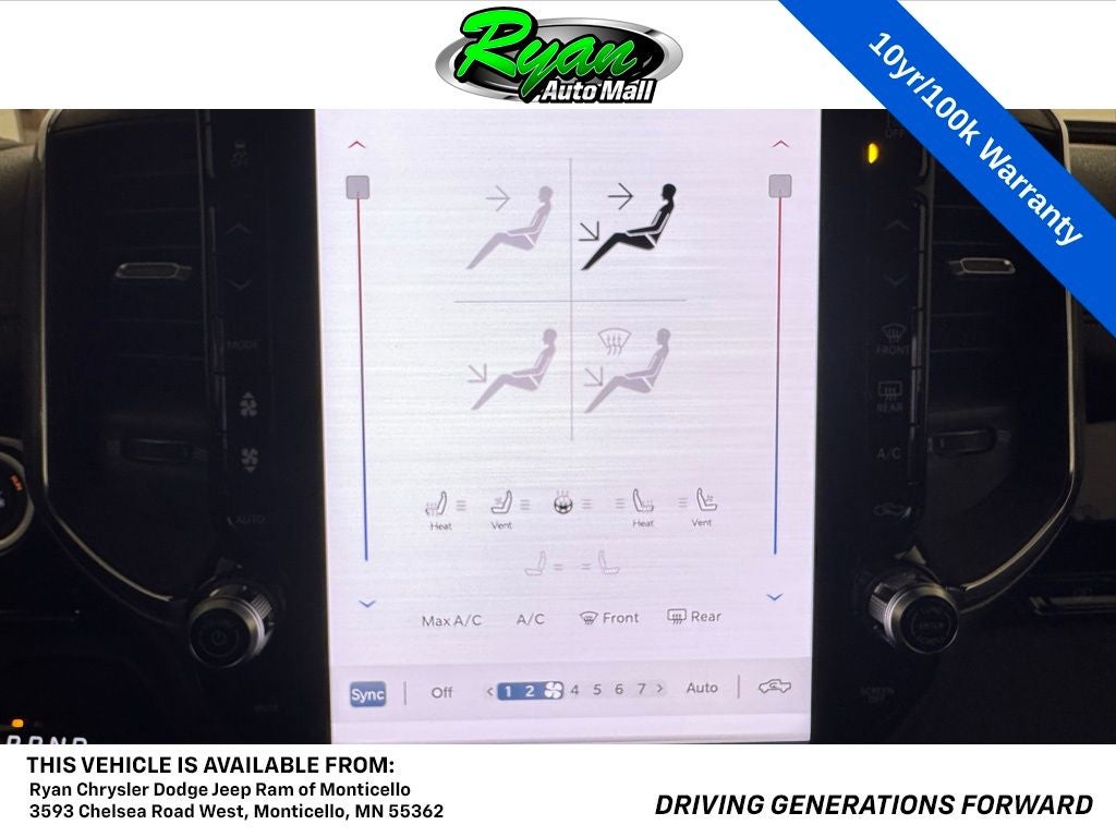 The Laramie trim is known for its upscale interior and thoughtful standard equipment. Inside the spacious Crew Cab, youll find leather-trimmed seating, heated and ventilated front seats, a heated steering wheel, dual-zone automatic climate control, and a power-adjustable drivers seat with memory. A large touchscreen infotainment system with Apple CarPlay and Android Auto capability anchors the center of the dash, complemented by a digital instrument cluster that clearly displays key vehicle information. Advanced safety and driver-assist technologies, including blind spot monitoring, rear cross-traffic alert, adaptive cruise control, and parking assistance features, help enhance confidence whether commuting around Monticello or heading out on longer highway drives.