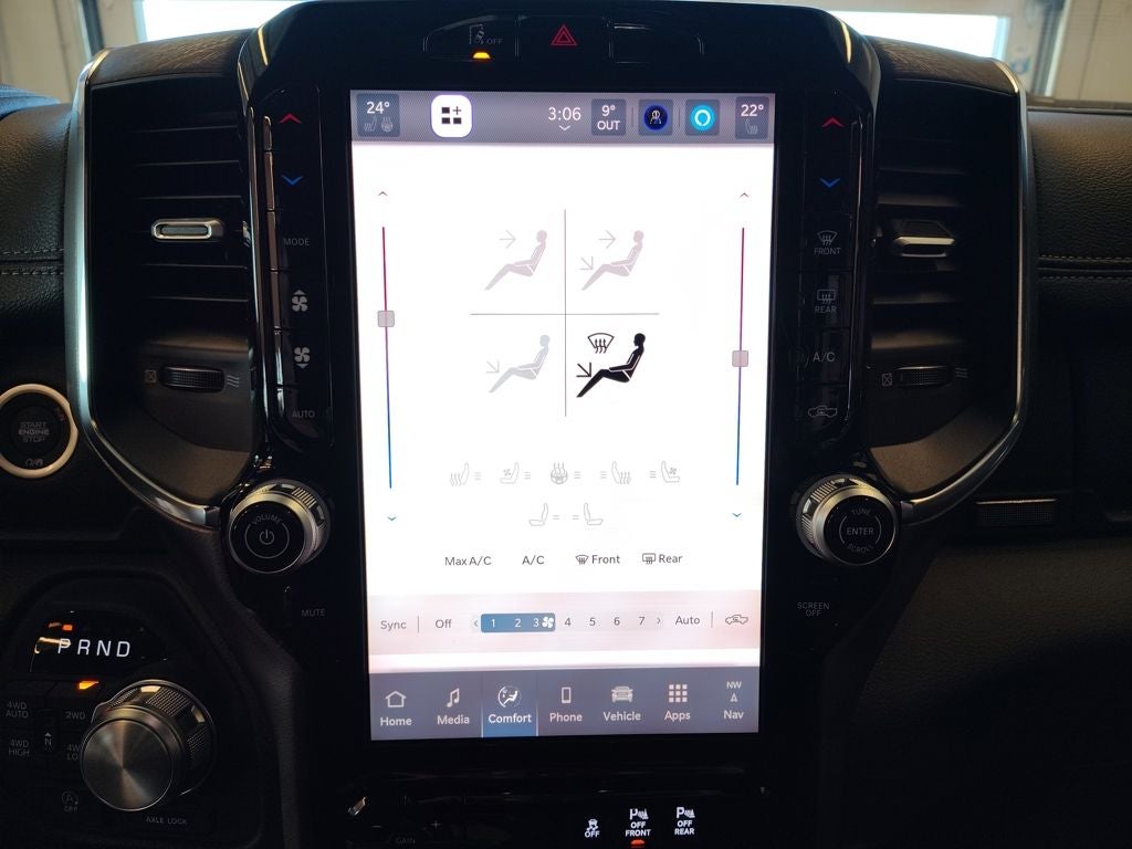 Inside, the refined Laramie cabin offers premium materials, spacious Crew Cab comfort, and advanced technology designed for everyday convenience. The Laramie Level 1 Equipment Group adds rain-sensitive windshield wipers and a power tailgate release for added functionality. Comfort features include heated and ventilated front seats, a heated steering wheel, dual-zone automatic climate control, and advanced connectivity through the Uconnect system with smartphone integration, keeping you connected wherever the road leads. MyFlexCare Service coverage adds additional peace of mind for ownership.