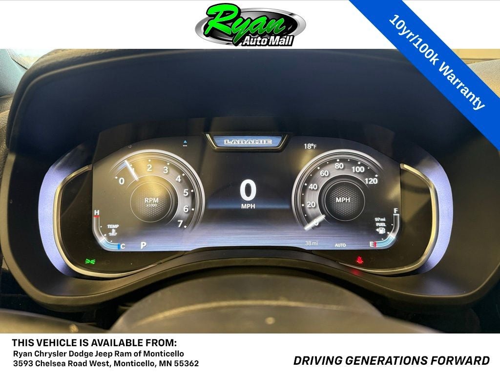 Inside the cabin, the Laramie offers a premium environment enhanced by leather-trimmed bucket seats, advanced connectivity features, and high-end materials. The Laramie Level 2 Equipment Group adds elevated convenience and technology, including upgraded driver-assist features, enhanced cabin comfort, and premium audio. The Night Edition appearance package brings bold styling with blacked-out exterior accents, unique wheels, and darkened badging for a standout presence on Monticello roads.