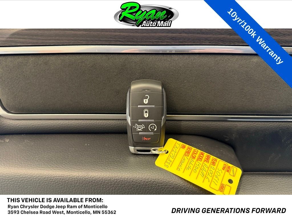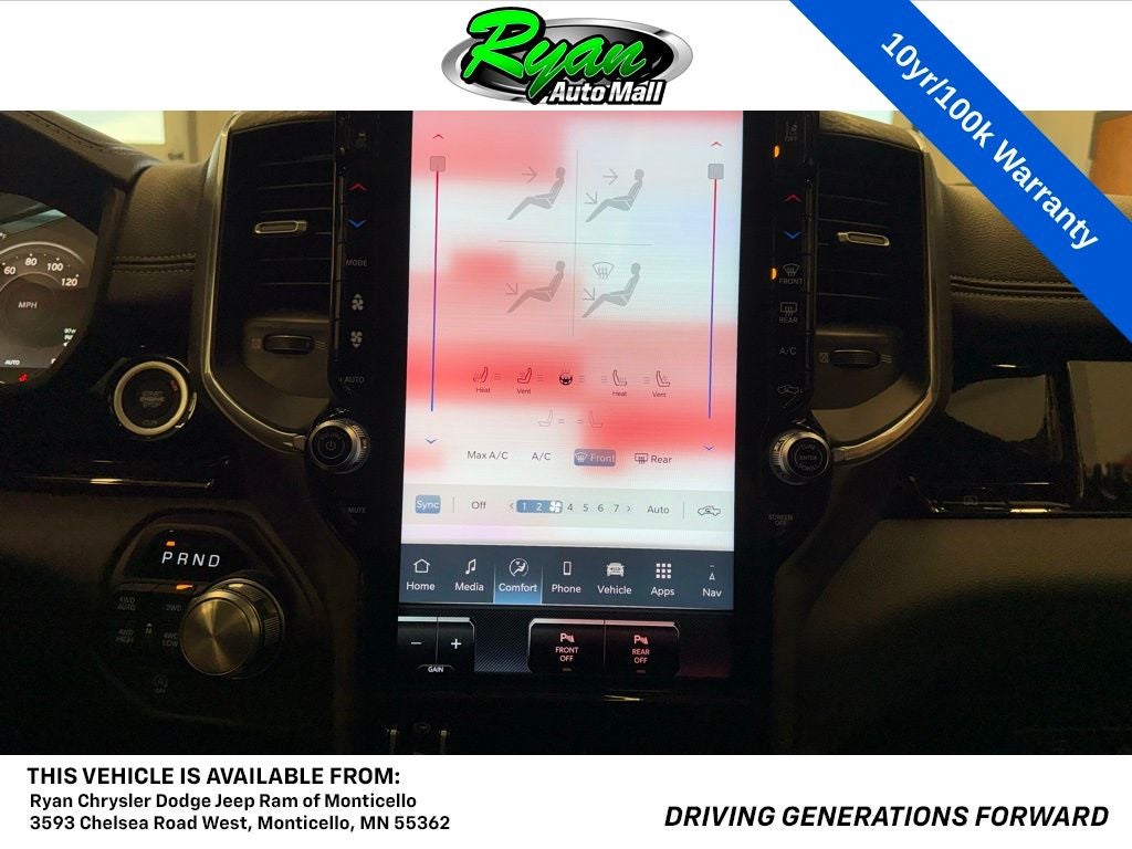 Convenience and usability are further elevated with power deployable running boards and a dual-pane panoramic sunroof, adding both function and open-air visibility. The interior is designed for comfort and everyday practicality, offering thoughtful storage, a large touchscreen with Uconnect 5, smartphone integration, and the intuitive controls that make Ram one of the most driver-friendly trucks on the market. Trailer brake control enhances towing confidence, and 50-state emissions compliance ensures broad capability.
