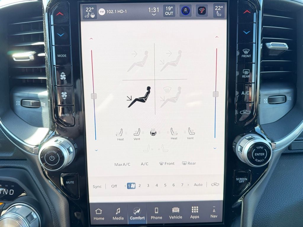 The Laramie trim blends rugged strength with upscale refinement, offering a bold exterior design and a well-appointed interior crafted for comfort and technology. Inside the spacious Crew Cab, premium materials and thoughtful features create a refined driving environment. Standard highlights include an advanced Uconnect infotainment system with a large touchscreen display, smartphone connectivity, multiple USB ports, dual-zone automatic climate control, keyless entry with push-button start, and a premium audio system. The cabin is designed for comfort on every drive with supportive seating, a leather-wrapped steering wheel, and a quiet, smooth ride enhanced by the active noise-control system.