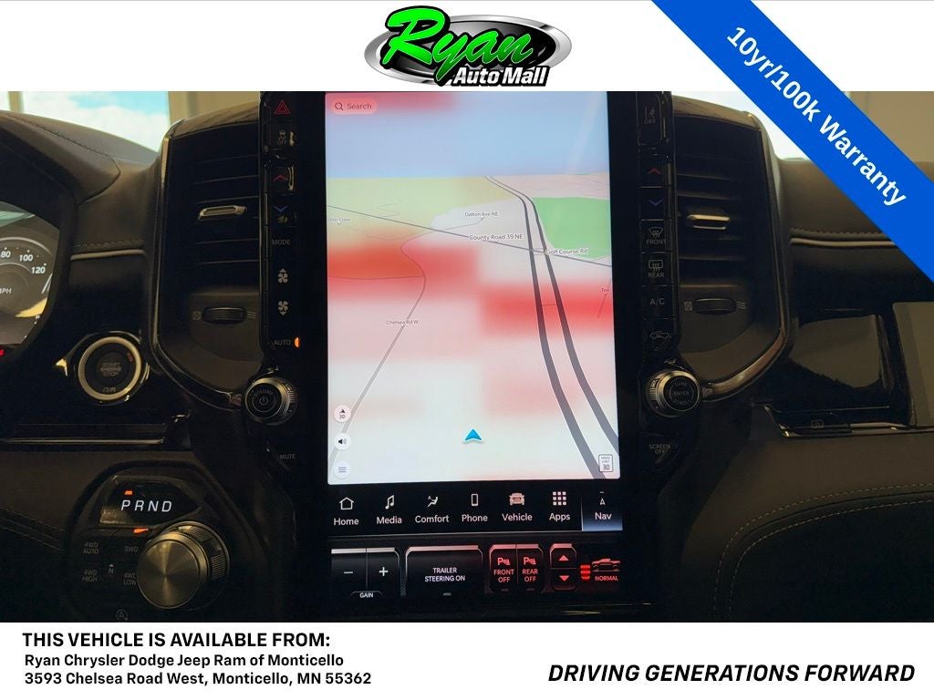 Power comes from Rams proven engine lineup paired with a smooth automatic transmission, offering impressive towing and hauling capability. This truck is equipped with the Trailer-Tow Group, adding a trailer brake controller, trailer reverse steering control, trailer light check, and trailer tire pressure monitoring to make towing easier and safer throughout Minnesota.