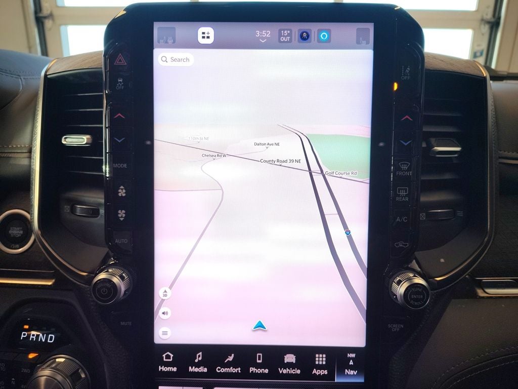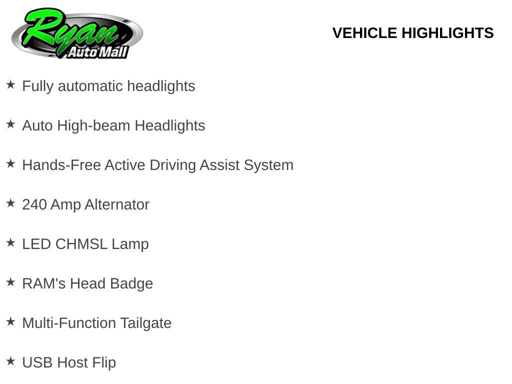 Technology takes center stage with the Uconnect 5 navigation system displayed on a massive 14.4-inch touchscreen, supported by a head-up display, digital rearview mirror, and a full surround-view camera system for enhanced visibility in tight spaces or on the jobsite. A powerful 240-amp alternator ensures reliable electrical performance, while the electronic locking rear axle and trailer brake controller support towing and hauling demands.