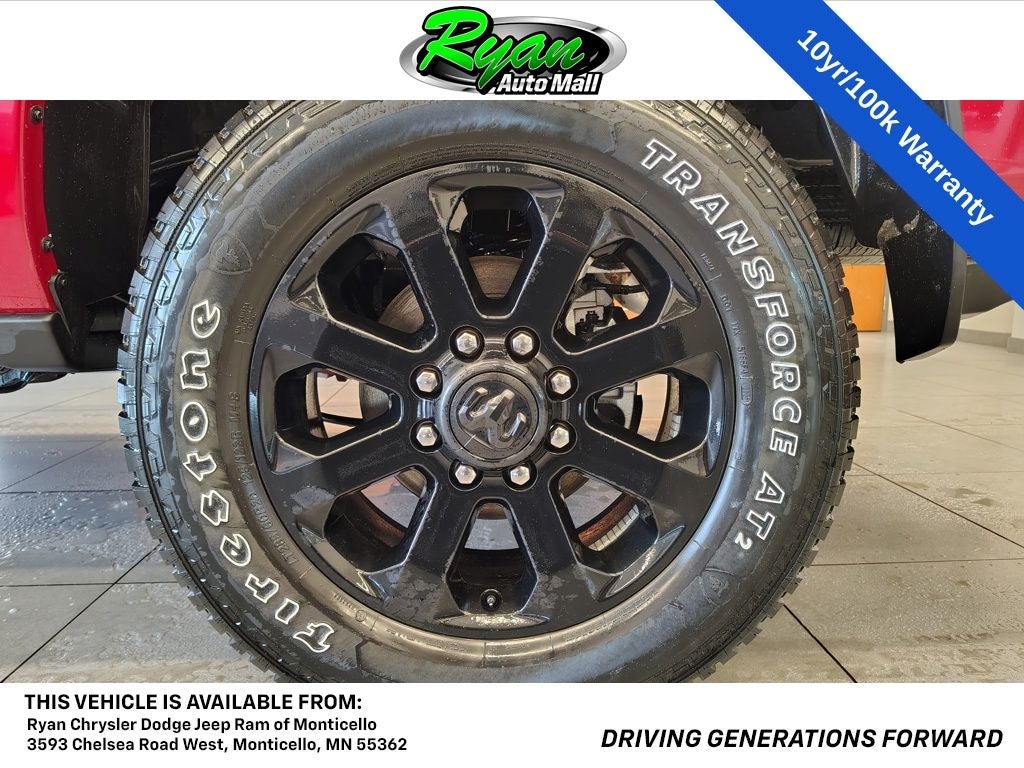 This Ram 2500 also stands out visually with the Night Edition, featuring black interior accents, painted front and rear bumpers, red tail lamp bezels, and 20-inch black painted aluminum wheels, all complemented by the bold Molten Red Pearl-Coat exterior. Practical upgrades such as LED bed lighting, deployable bed step, spray-in bedliner, forward and reverse utility lights, power heat-fold telescoping mirrors, remote start, and Mopar all-weather floor mats add everyday convenience and durability.