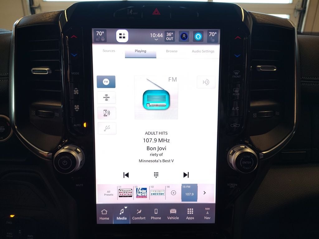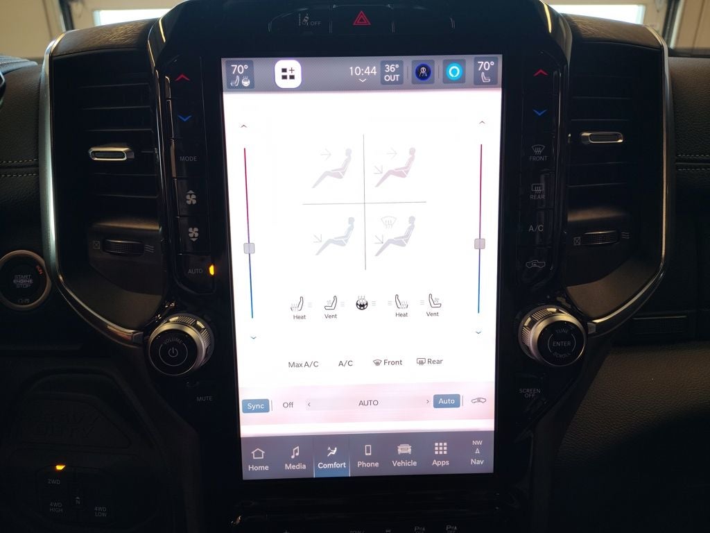 Inside the spacious Crew Cab, the Laramie Level 1 Plus Equipment Group elevates refinement and technology. Leather-trimmed bucket seats provide premium comfort, while second-row in-floor storage bins add practical versatility. Power heat, fold, and telescoping memory mirrors with automatic adjust-in-reverse and auto-dimming capability improve visibility when towing. A dual wireless charging pad keeps devices powered, and rain-sensitive windshield wipers add convenience in changing conditions.