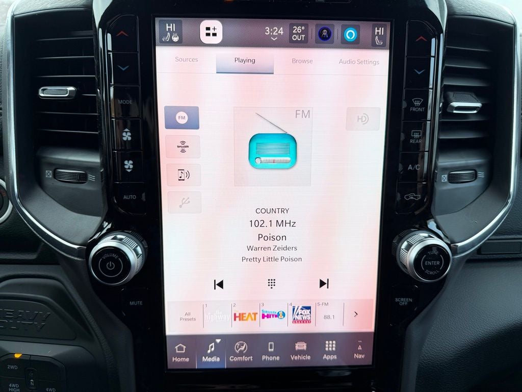 The Night Edition gives this Laramie a commanding presence with 20-inch black painted aluminum wheels, a body-color grille surround, a sport performance hood, black exterior accents, and clearance lamps. Cold-weather upgrades such as an engine block heater and Mopar winter front grille cover ensure reliable operation during Buffalos harsh winters, while a power sunroof adds open-air comfort on warmer days.