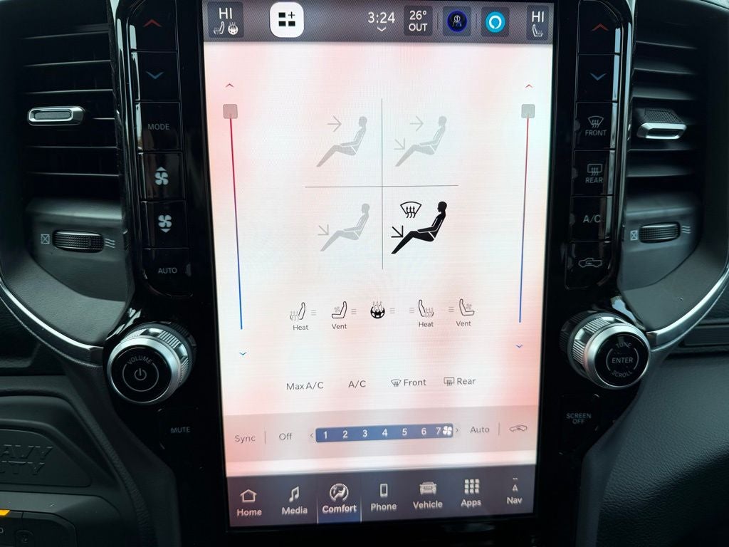 Inside, the Laramie Level 1 Plus Equipment Group surrounds you with premium features, including leather-trimmed bucket seats, dual wireless charging pads, power adjustable pedals with memory, rain-sensitive windshield wipers, second-row in-floor storage bins, and power heat, fold, and telescoping memory mirrors with reverse tilt and auto-dimming functionality. Advanced driver assistance technologies include adaptive steering, active lane management, traffic sign recognition, drowsy driver detection, and a center stop lamp with cargo-view camera for added awareness.