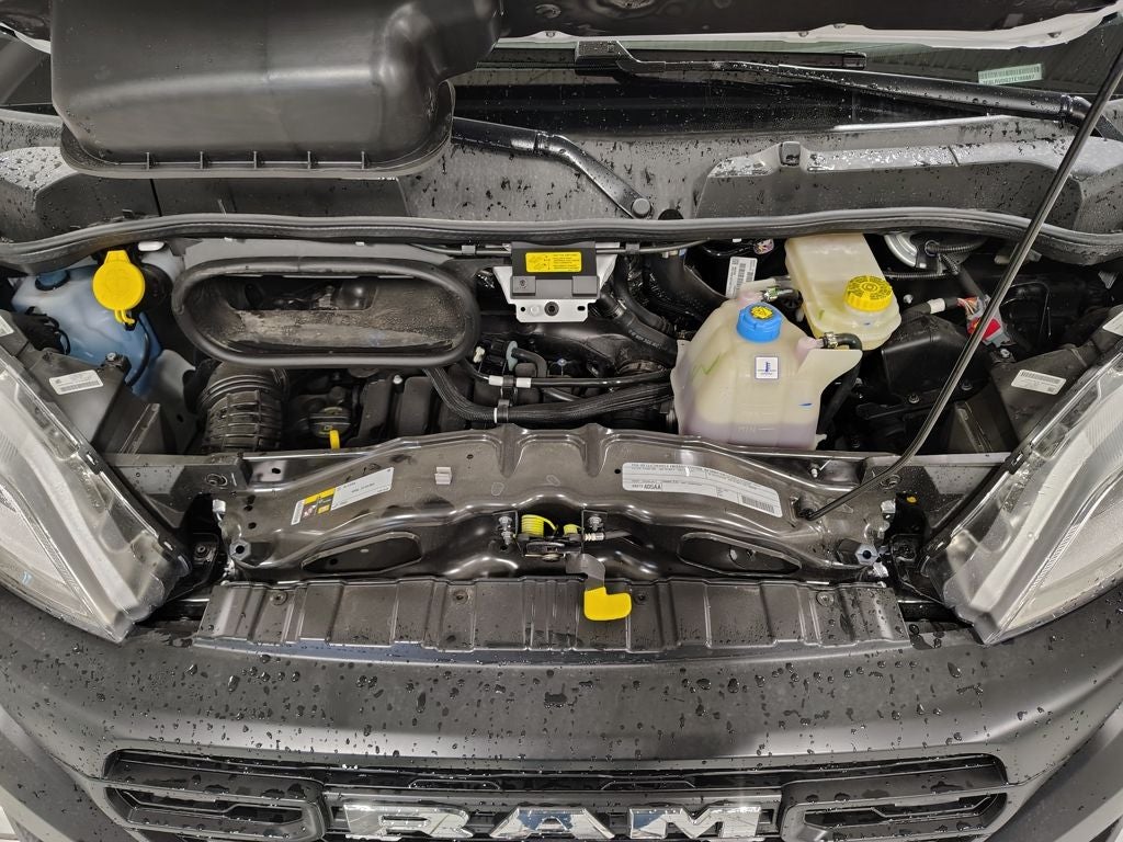 This ProMaster is equipped with the Power Group, which adds a 220-amp alternator and 100-amp battery to support increased electrical demands. A 115-volt auxiliary power outlet and 12-volt rear auxiliary outlet provide convenient power access for tools and equipment. The cargo storage headliner and available wood floor enhance organization and durability, while Mopar cargo-area LED lighting improves visibility when working inside the van in low-light conditions.