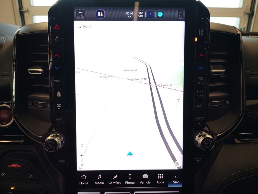 Technology in this truck is exceptional, highlighted by the massive Uconnect 5 NAV system with a 14.4-inch touchscreen display, a front passenger interactive display, dual wireless charging pads, and a powerful 19-speaker Harman Kardon premium audio system. Additional advanced features include a head-up display, digital rearview mirror, surround-view camera system, traffic sign recognition, hands-free active driving assist, intersection collision assist, evasive steering assist, and driver attention monitoring. Luxury touches such as a leather and carbon flat-bottom steering wheel, premium interior trim, rain-sensing wipers, power adjustable pedals with memory, and a power tailgate further enhance the driving experience.
