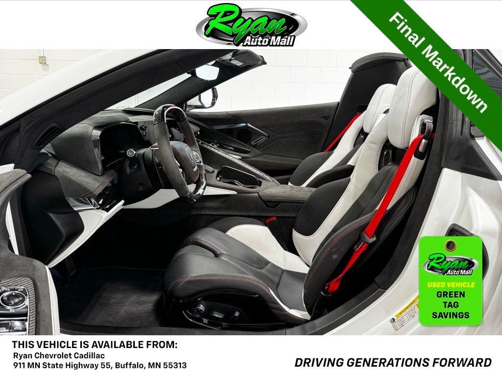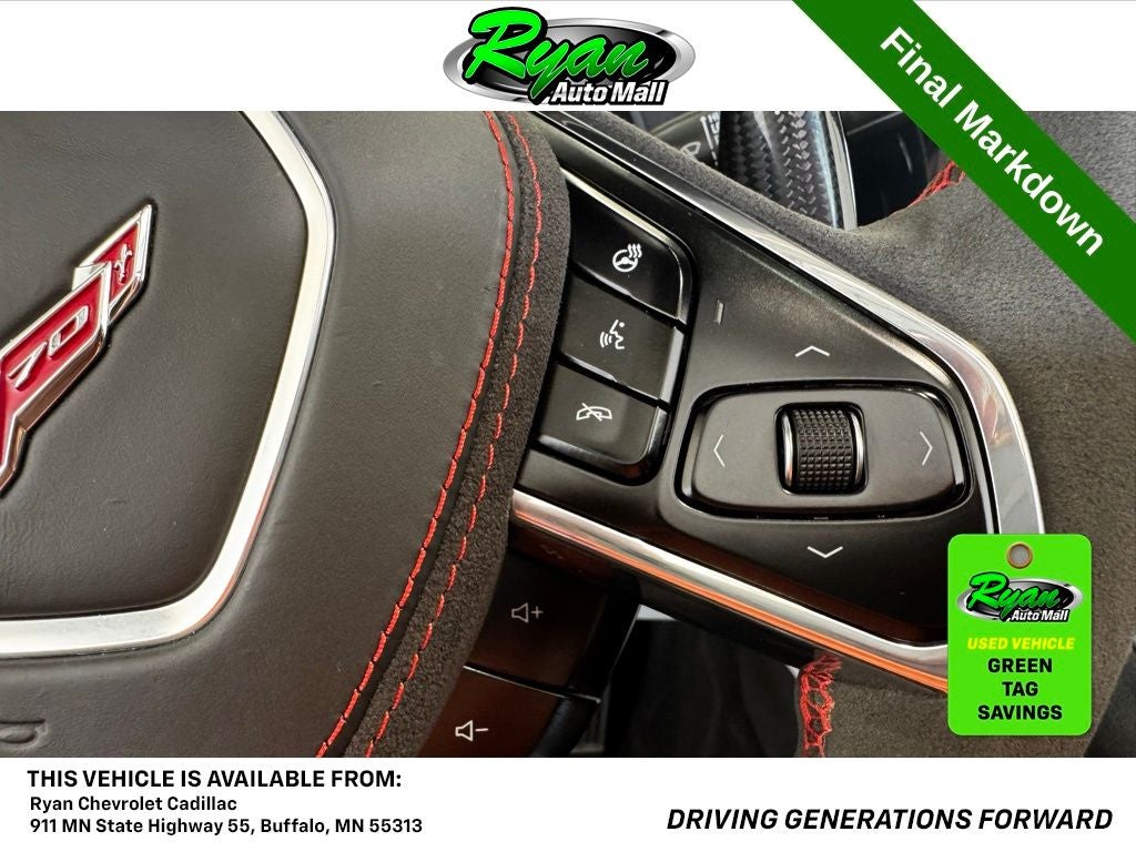 For driving enthusiasts in Buffalo and beyond, this 2023 Corvette Z06 Anniversary Edition delivers supercar performance with daily usability. Perfectly reconditioned, sharply equipped, and proudly on display at Ryan Chevrolet, this Z06 offers an exhilarating driving experience grounded in precision engineering and luxury. Contact us for availability and a test drive today. Buy with confidence: Backed by the Ryan Auto Mall group, we boast over 22,000 online reviews and are proud recipients of 9 GM Mark of Excellence awards and 65 MN DealerRater Dealer of the Year awards. Warranty included. Tax, title, license fees, and a $350 documentation fee are not included. Stay safe with PULSE, our optional rear-end collision deterrent system, for just $399. Experience peace of mind with this advanced safety feature which is pre-fitted to all our vehicles.Visit us at 911 E Highway 55, Buffalo, MN 55313, or call 612-326-6209 to schedule a test drive and discover the Ryan Auto Mall difference!