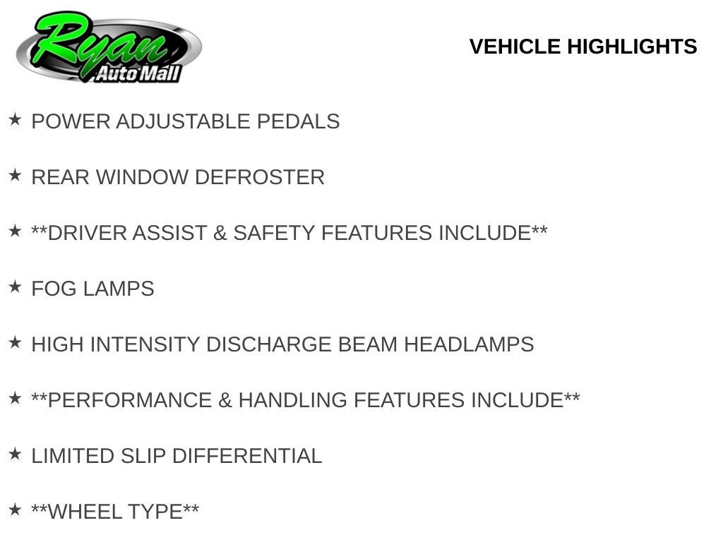 - **DRIVER ASSIST & SAFETY FEATURES INCLUDE**