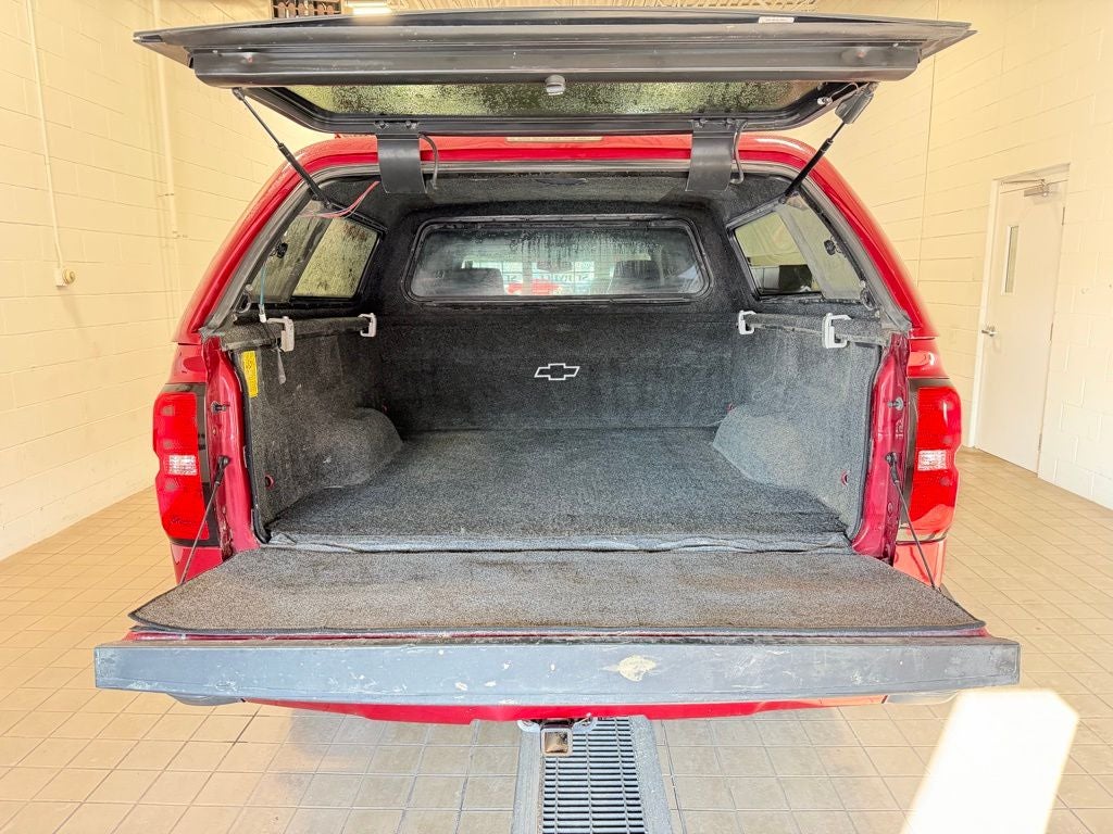 Safety and visibility are supported by high intensity discharge headlamps, fog lamps, and a rear vision camera to assist when maneuvering in tight spaces or hooking up a trailer. This Silverado is ready for hauling and towing duties with a 5 foot 8 inch cargo bed, integrated trailer brake controller, LED cargo bed lighting, and durable bed protection including a bed mat and carpeted bed rug. Exterior upgrades such as chrome side assist steps, topper, deep tinted glass, splash guards, and tow hooks enhance both functionality and appearance, while 18-inch bright-machined aluminum wheels complete the strong, confident stance.
