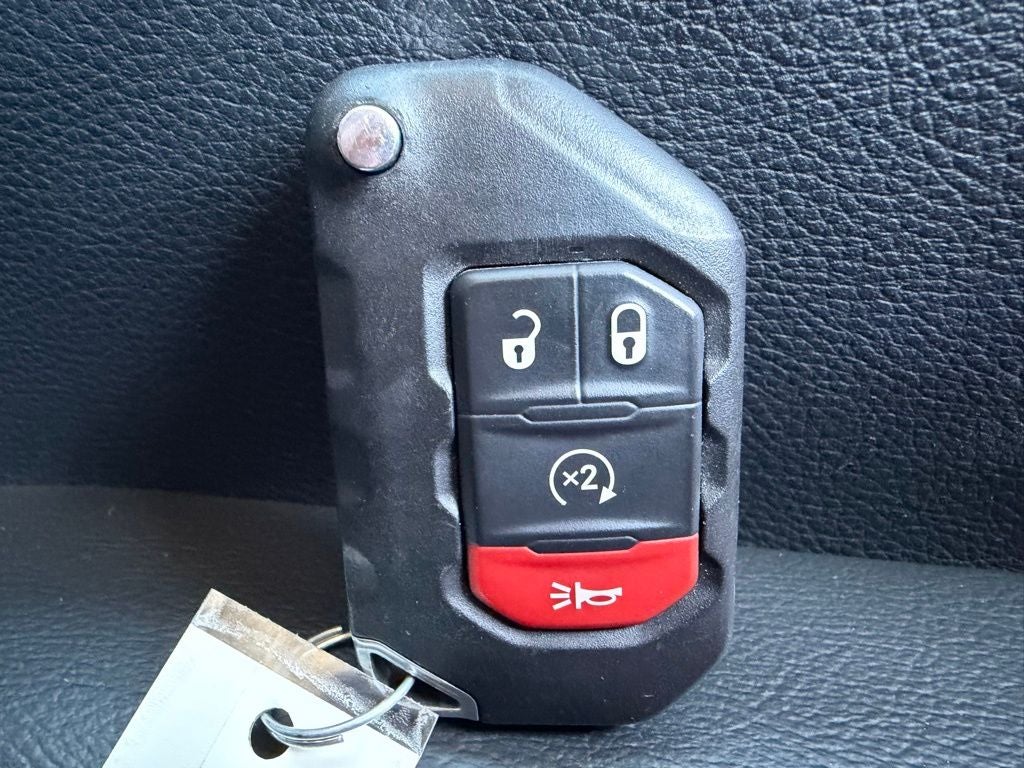 This Wrangler is also equipped for utility with a Class II receiver hitch, while deep tinted glass and signature red tow hooks add both style and functionality. Riding on 17-inch aluminum wheels, it maintains the bold and iconic Jeep appearance.