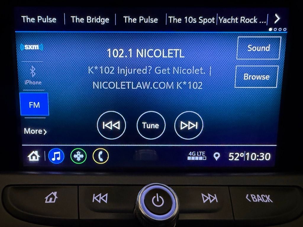 - Audio system, Chevrolet Infotainment 3 system 8" diagonal color touchscreen, AM/FM stereo. Additional features for compatible phones include: Bluetooth® audio streaming for 2 active devices, voice command pass-through to phone, Apple CarPlay and Android Auto capable.
