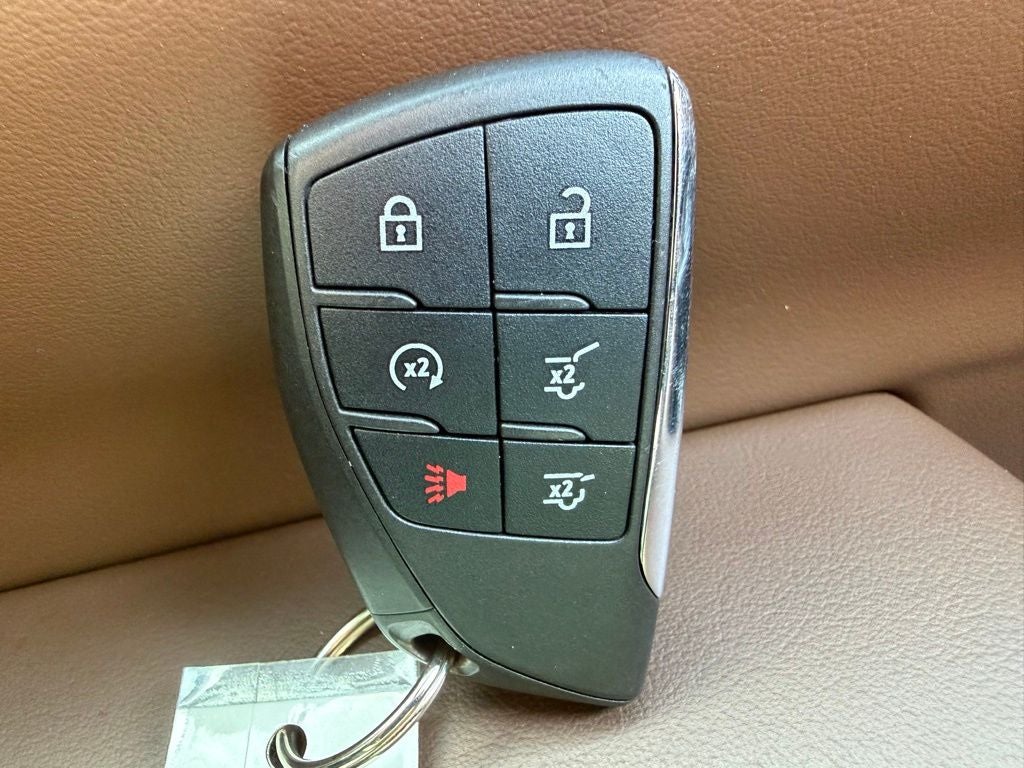 Our reconditioning work included a comprehensive multi-point inspection with oil change, mounting and balancing four new tires, new rear brake pads and rotors, new engine and cabin air filters, and a complete interior and exterior detail to ensure this Tahoe meets the high standards expected at Ryan Chrysler Dodge Jeep Ram in Buffalo, MN. Additional upgrades such as power retractable running boards with perimeter lighting, deep tinted glass, wheel locks, and 22-inch aluminum wheels with chrome inserts enhance both style and functionality.