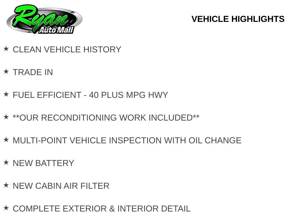 If you are searching for a fuel-efficient, dependable, and well-equipped sedan in the Monticello, MN area, this 2021 Honda Civic EX is an excellent choice. Contact us for availability and a test drive today. Buy with confidence at Ryan Auto Mall, where our reputation is built on trust and results. Every pre-owned vehicle undergoes a comprehensive multi-point inspection and professional reconditioning to ensure quality, reliability, and presentation you can depend on. This vehicle includes warranty coverage, either remaining factory warranty or a limited powertrain warranty, for added peace of mind. Extended vehicle service contracts are also available for purchase on any vehicle we offer. Every vehicle is pre-fitted with PULSE, our rear-end collision deterrent system, available for just $399. With over 22,750 customer reviews, and 65 Minnesota DealerRater Dealer of the Year honors, you can be confident you are choosing a proven leader. Pricing excludes tax, title, license, and a $350 documentation fee. Visit Ryan Auto Mall at 3593 Chelsea Rd West, Monticello, MN 55362 or call 763-314-4498 to schedule your test drive and experience the Ryan difference.
