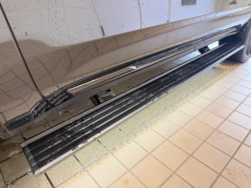 For towing and hauling, this Escalade is equipped with trailering equipment, a trailer brake controller, hitch guidance, power folding mirrors, and a 3.23 rear axle ratio. Power retractable running boards with perimeter lighting, deep tinted glass, and bold 22-inch gloss black aluminum wheels complete the striking exterior design.