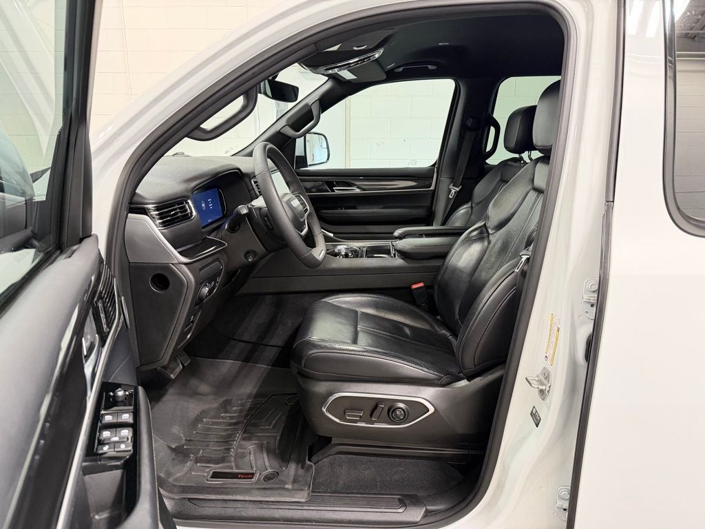 Inside, the Wagoneer offers a spacious and refined cabin with seating for up to eight passengers. Leather-trimmed upholstery, heated and ventilated front seats, and a heated steering wheel provide year-round comfort, while power-adjustable front seats with memory settings and power-adjustable pedals enhance driver convenience. Tri-zone automatic climate control ensures comfort for all passengers, and a power liftgate, remote start, and universal garage door opener add everyday practicality.