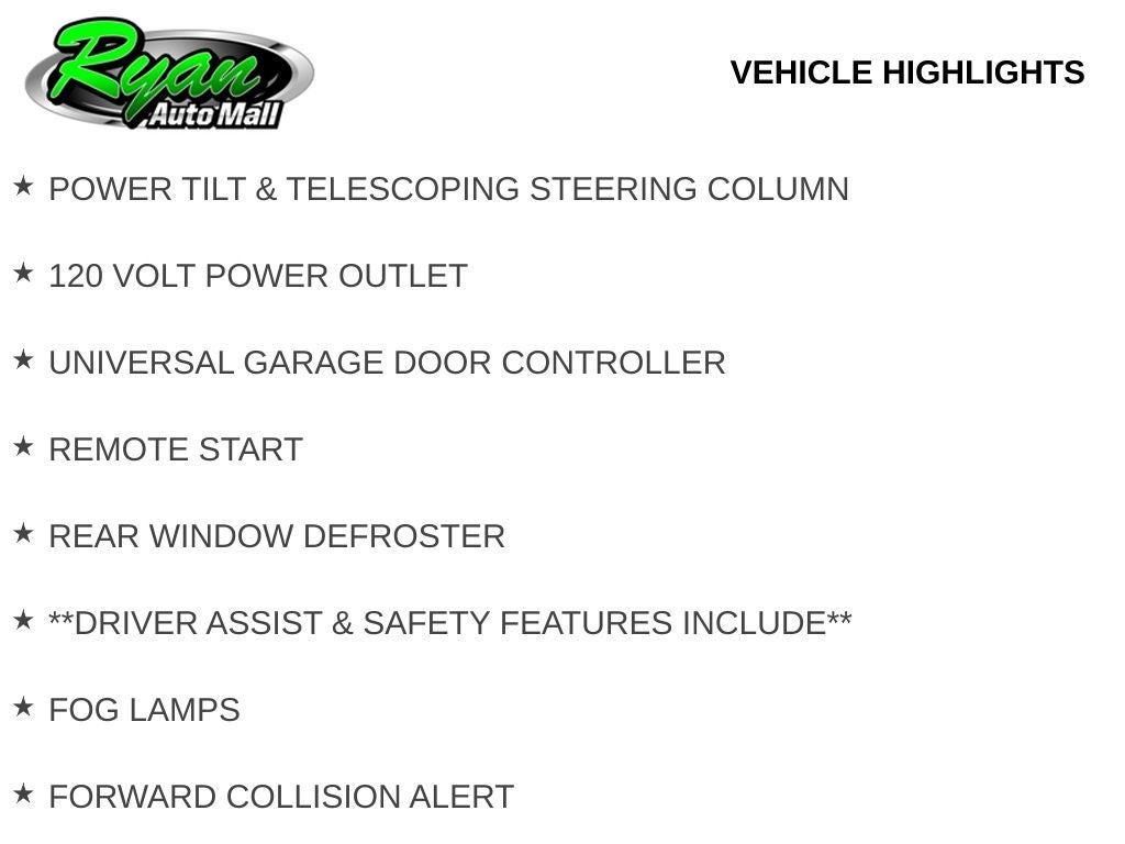 - **DRIVER ASSIST & SAFETY FEATURES INCLUDE**