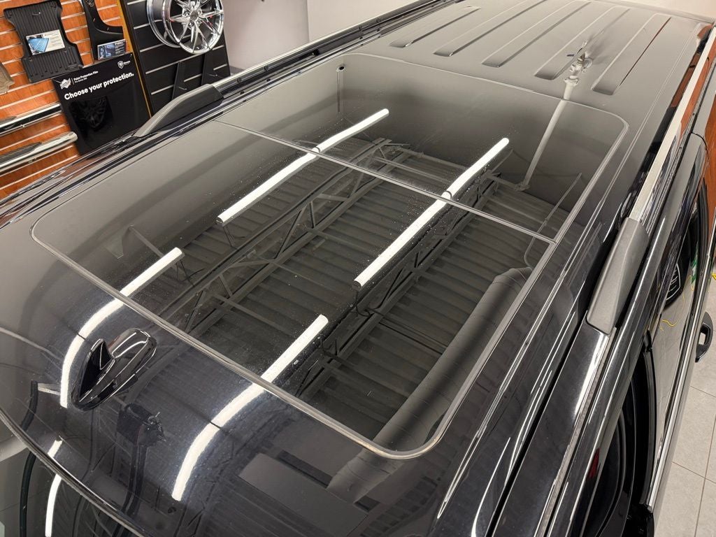 Inside, you’ll find expansive three-row seating and luxury-level comfort. Premium leather upholstery, heated and ventilated front seats, heated second-row seats, power-adjustable front seats, and a heated steering wheel ensure comfort in every season. Multi-zone automatic climate control, power-adjustable pedals, power-folding third-row seating, and remote start create a seamless daily experience whether dropping kids at school, heading to Target, or traveling to the cabin for the weekend. A panoramic power sunroof enhances visibility and comfort, letting in natural light across the spacious interior.