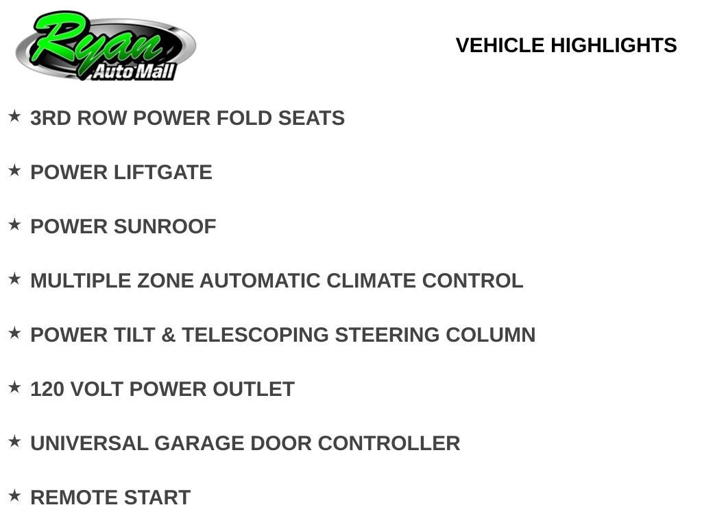 This one-owner vehicle features a clean vehicle history and has completed our comprehensive reconditioning process, including a multi-point vehicle inspection with oil change, new rear brake pads and rotors, new engine and cabin air filters, and a complete exterior and interior detail to ensure it is ready for the road. Inside, you’ll enjoy premium leather seating with heated and ventilated front seats, heated second-row seats, a heated steering wheel, memory settings, power-adjustable driver and front passenger seats, bucket seating, and power-folding third-row seats for flexible passenger and cargo configurations.