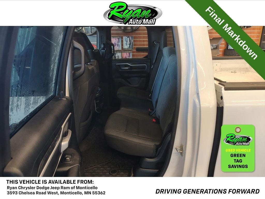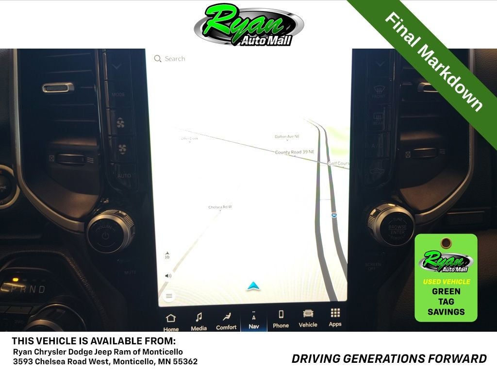 Safety and driver assistance features help support confident driving with fog lamps, front and rear park assist with automatic braking, keyless entry with push-button start, and a rear vision camera. Performance and capability are reinforced by an anti-spin differential rear axle, while towing and hauling needs are met with a 6-foot 4-inch cargo bed, a Class IV receiver hitch, and power folding mirrors for improved visibility. Exterior enhancements include deep tinted glass and striking 20-inch premium paint and polished aluminum wheels that complete the Night Edition appearance. For added peace of mind, a free CARFAX Vehicle History Report is available on our website. If you are searching for a well-equipped Ram 1500 in the Monticello, MN area that blends capability, technology, and comfort, this Big Horn/Lone Star is ready to deliver. Contact us for availability and a test drive today. Buy with confidence at Ryan Auto Mall. With over 22,500 reviews, 9 GM Mark of Excellence awards, and 65 MN DealerRater Dealer of the Year honors, our reputation is proven. This pre-owned vehicle has been inspected and reconditioned but is sold AS-IS with no warranty. Pricing excludes tax, title, license, and a $350 doc fee. Every vehicle comes pre-fitted with PULSE, our rear-end collision deterrent system, available for just $399. Visit us at 3593 Chelsea Rd West, Monticello, MN 55362 or call 763-314-4498 to schedule your test drive and experience the Ryan difference.