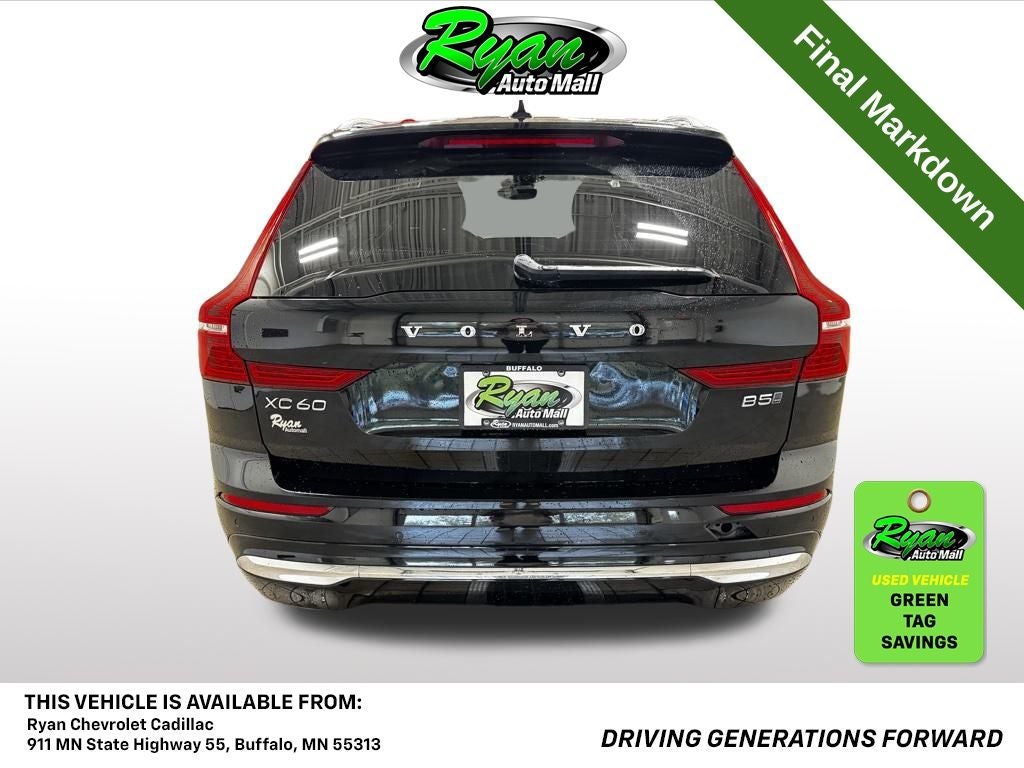Elevate your driving experience with this 2023 Volvo XC60 B5 Ultimate Bright Theme, available now at Ryan Chevrolet in Buffalo, Minnesota. This one-owner SUV with a clean vehicle history showcases the perfect blend of Scandinavian design, innovative safety features, and refined all-wheel-drive performance—crafted for Minnesota drivers who value luxury and confidence in every season.