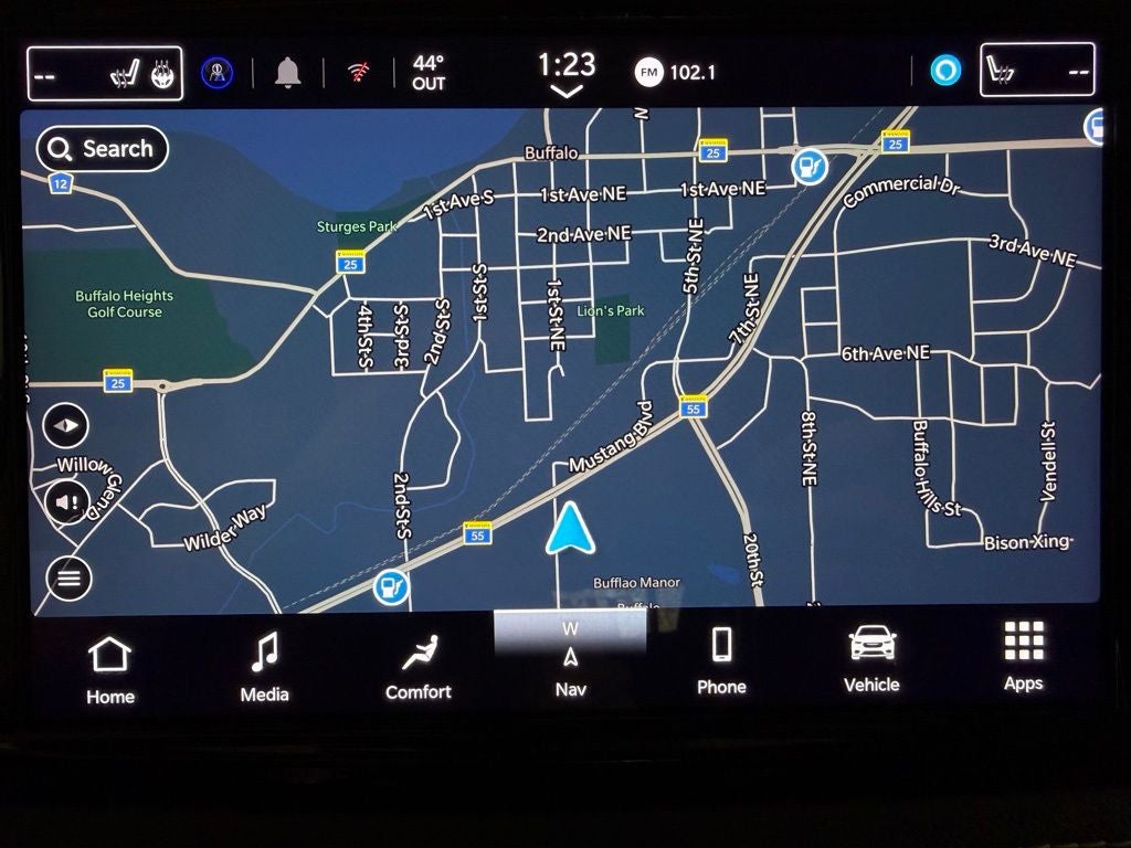 Inside, this Pacifica Limited offers premium comfort with synthetic leather upholstery, heated and ventilated front seats, heated second-row seats, and a heated steering wheel to help you stay comfortable through every season in Buffalo. Both the driver and front passenger enjoy power-adjustable seats with memory settings, while second and third row Stow ’n Go seating provides exceptional flexibility for passengers and cargo. A panoramic sunroof adds an open, airy feel to the cabin, and wireless device charging keeps everyone connected on the go. The premium Alpine speaker system enhances every drive with rich, clear sound.
