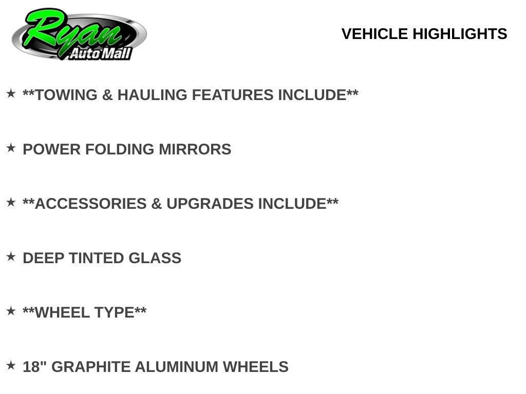Every effort has been made to offer current and accurate information to our users, but errors can occur. Ryan Auto Mall assumes no liability or responsibility for any errors or omissions in the content contained on this website. Prices are subject to change without notice.