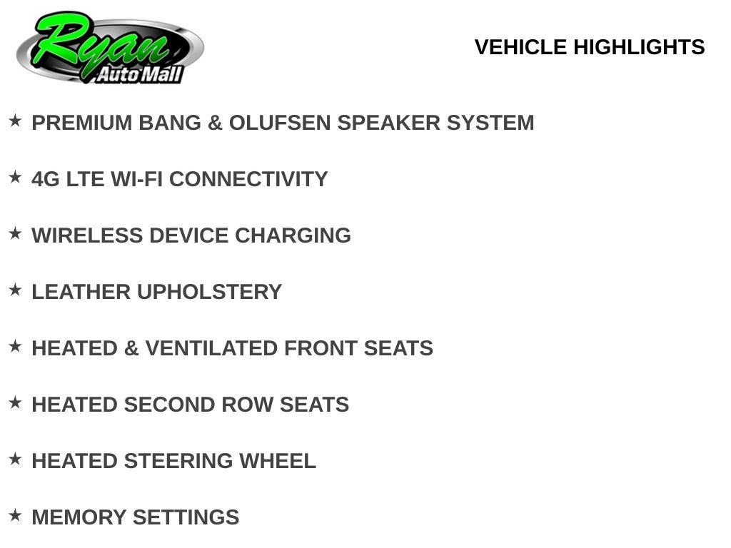 Inside, the cabin surrounds passengers with luxury and convenience. Premium leather upholstery, heated and ventilated front seats, heated second-row seats, and a power-folding third row create exceptional comfort for up to eight passengers. The driver and front passenger enjoy power-adjustable seats with memory settings, power tilt and telescoping steering, and power-adjustable pedals for a tailored fit. The interior also includes a panoramic sunroof, multiple-zone automatic climate control, a wireless charging pad, and a 120-volt outlet for added practicality. The Bang & Olufsen premium audio system delivers concert-quality sound, enhanced by Ford’s advanced SYNC infotainment system with navigation, 4G LTE Wi-Fi hotspot, and seamless smartphone connectivity.